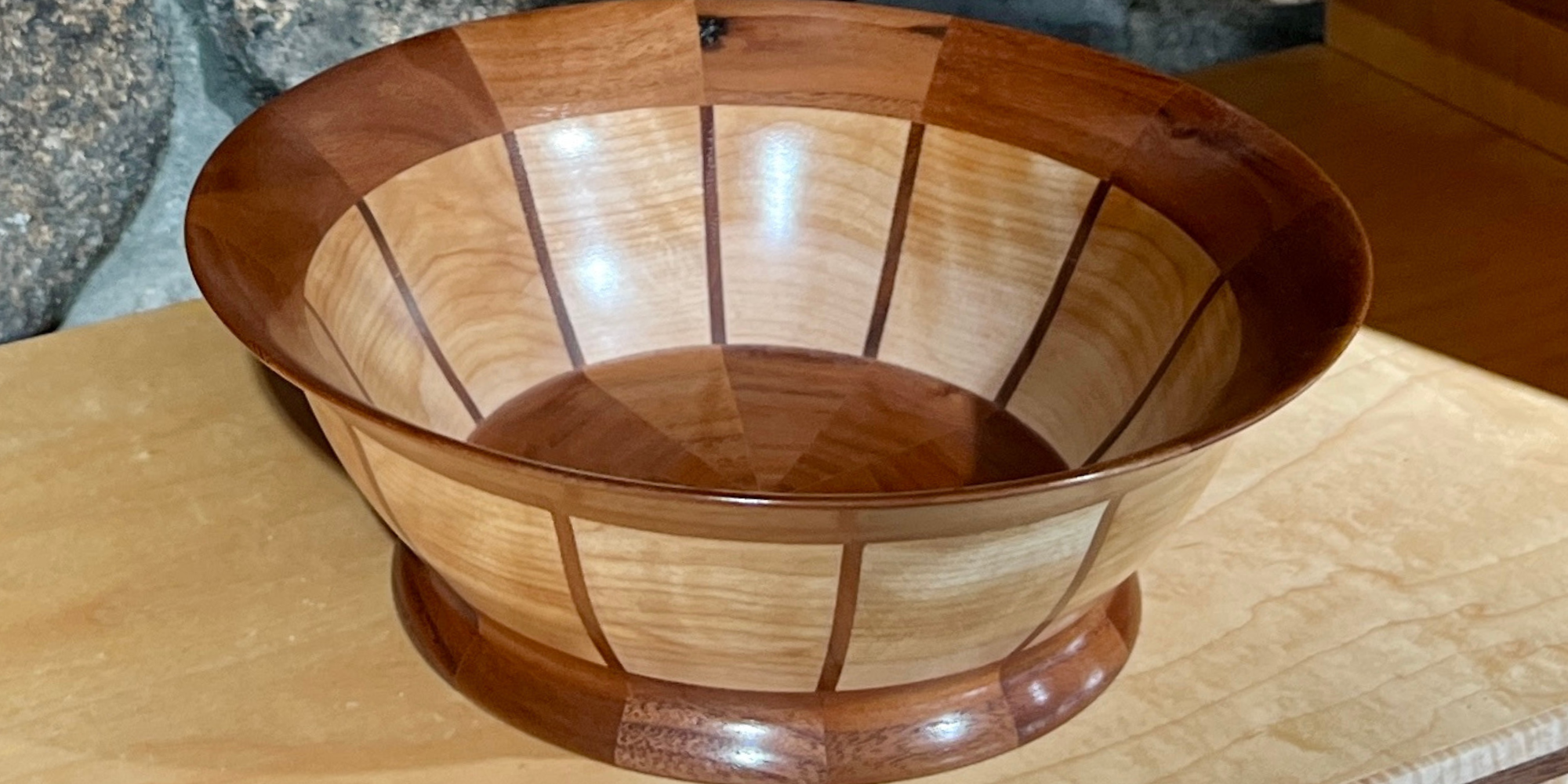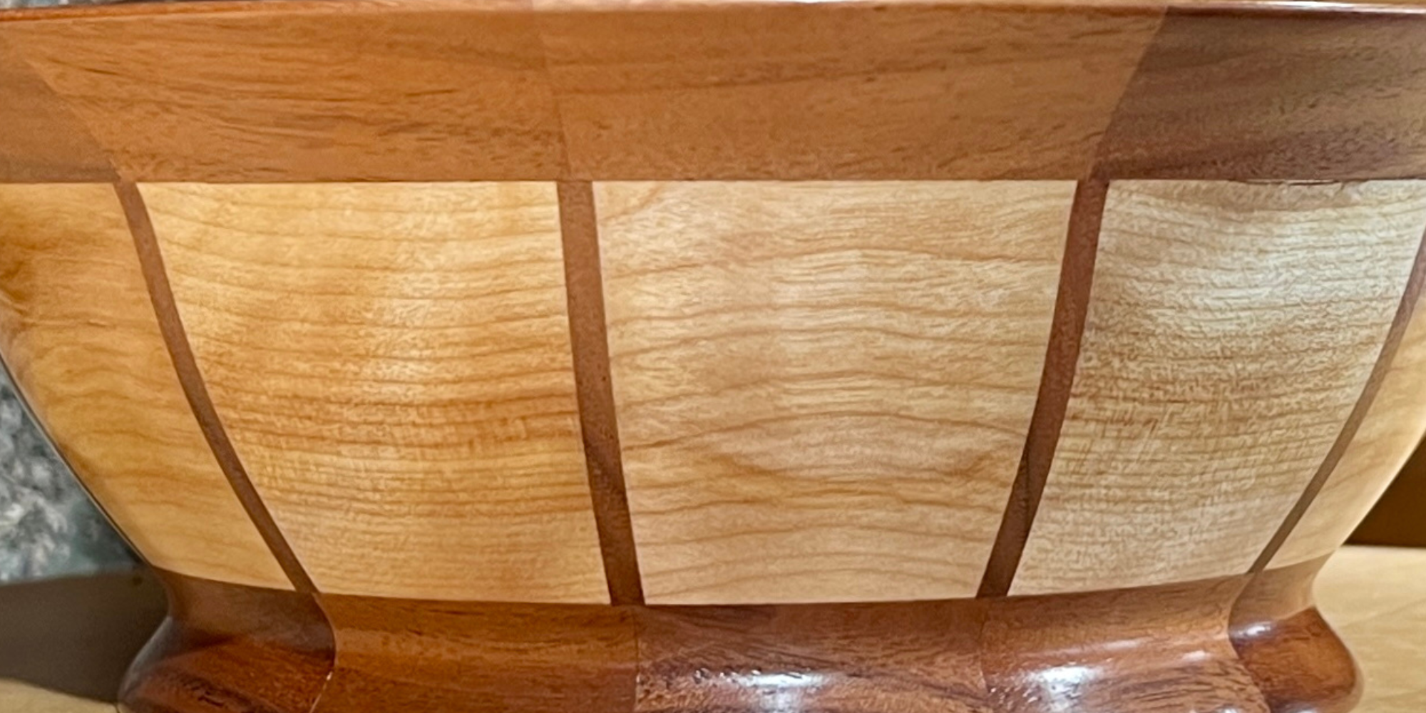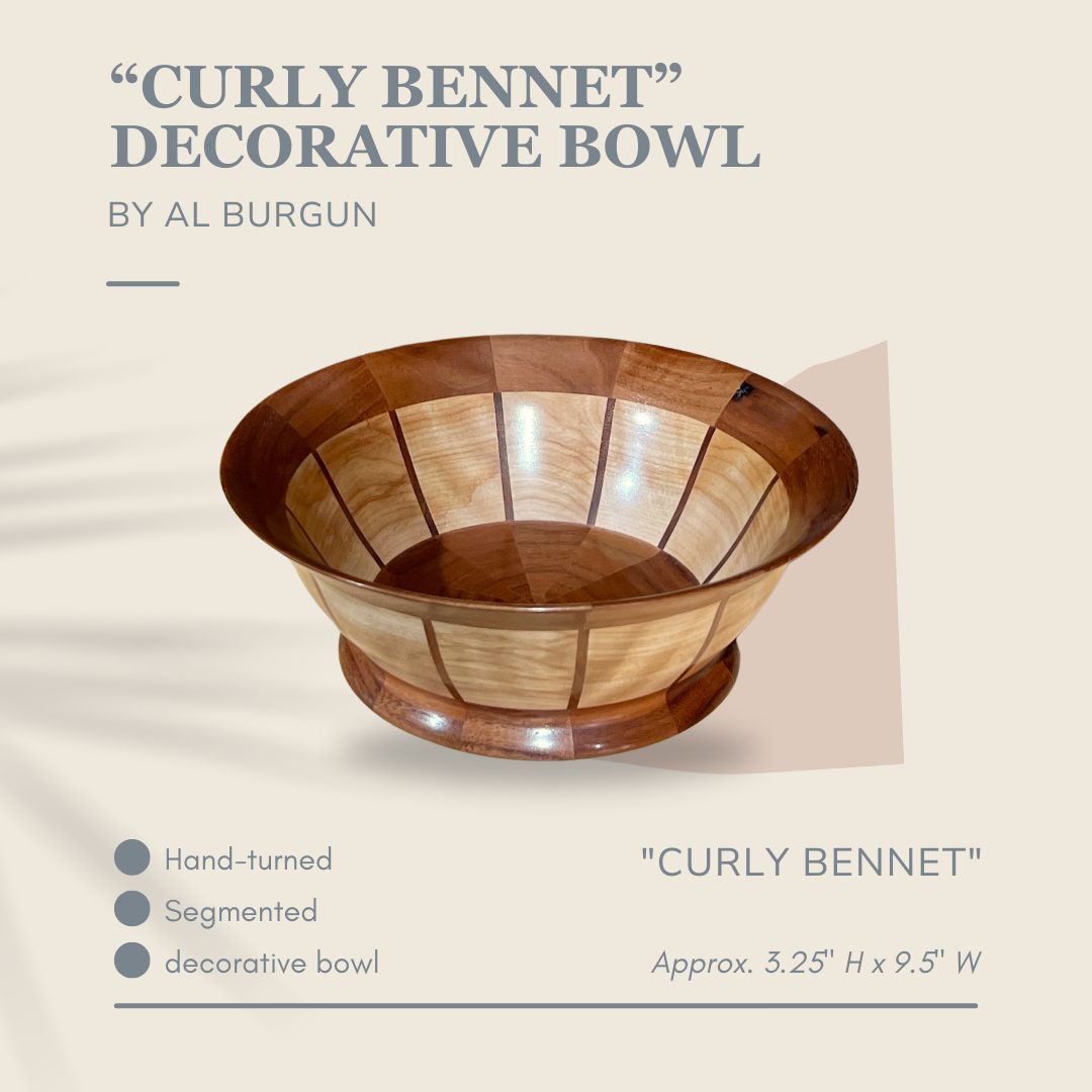 Curly Bennet is a stunning hand-turned, segmented decorative bowl by woodworker Al Burgun.