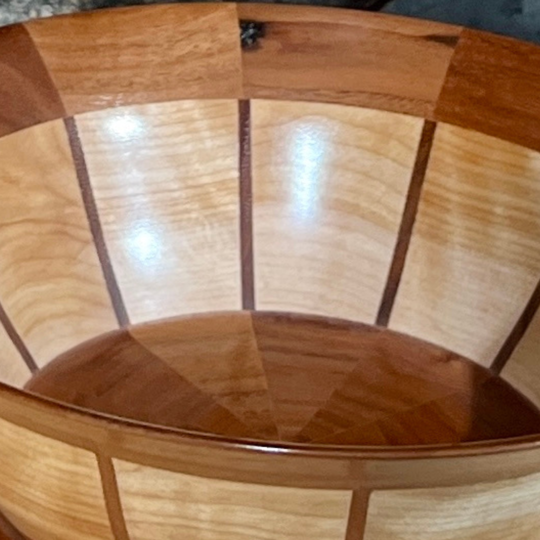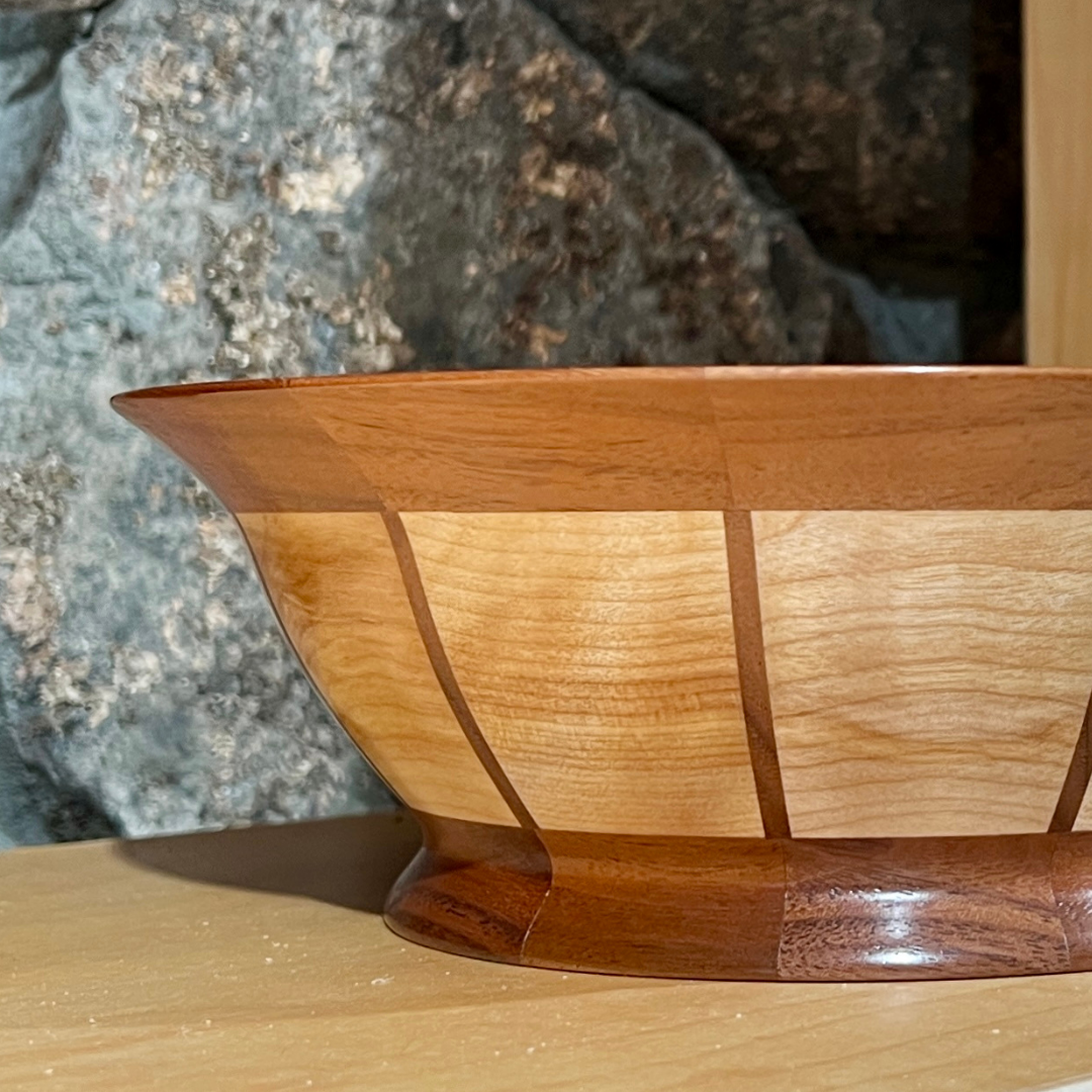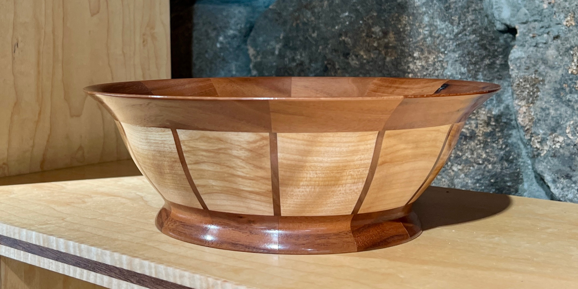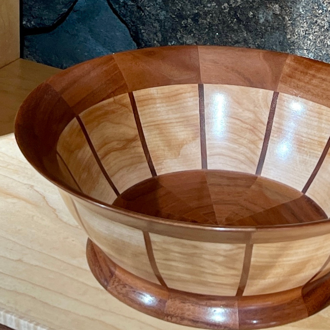 Curly Bennet is a stunning hand-turned, segmented decorative bowl by woodworker Al Burgun.