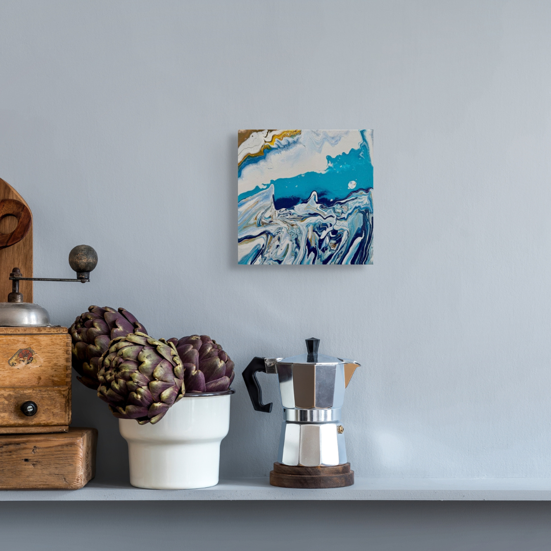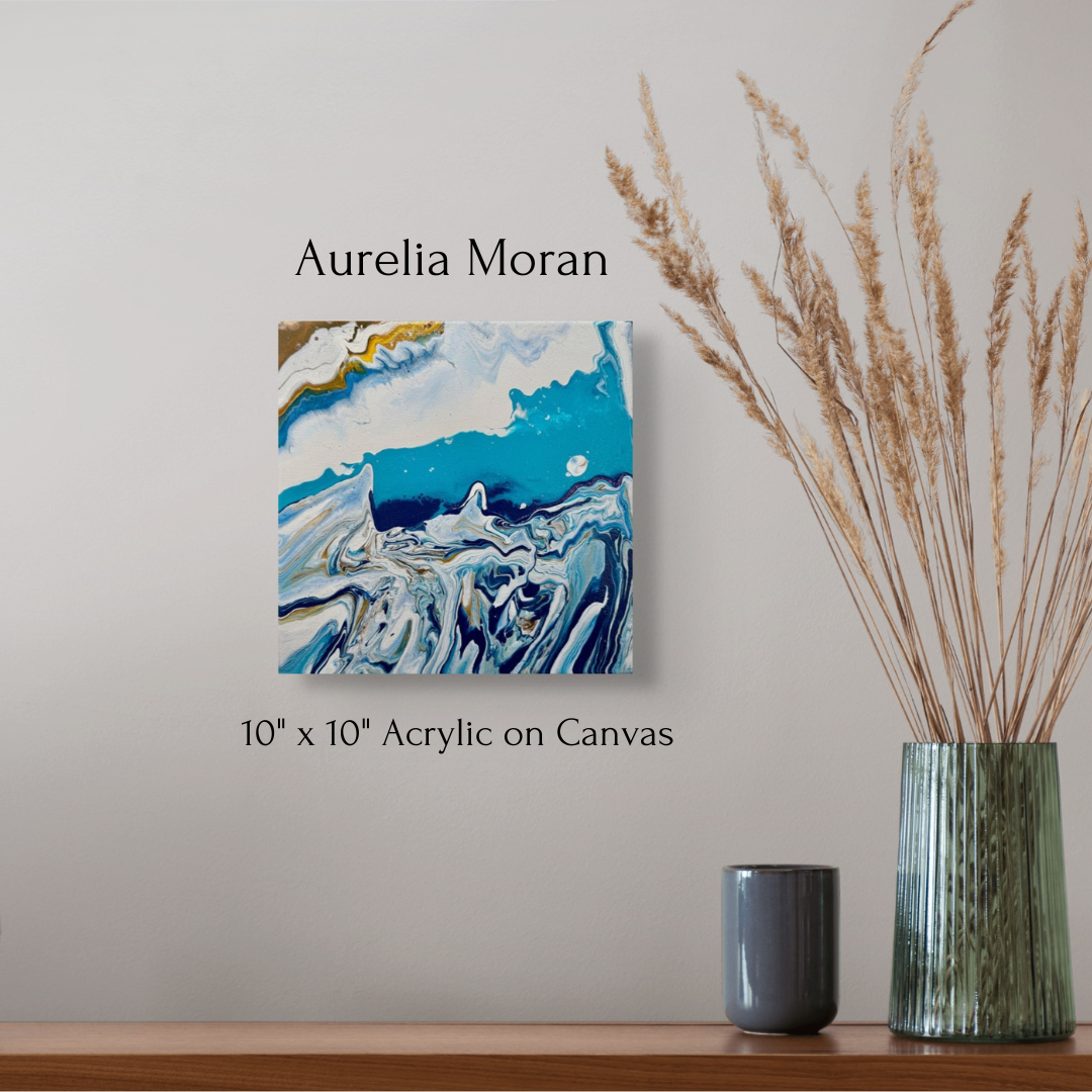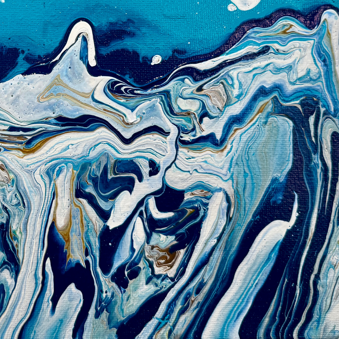 This original work features flowing blues and whites, evoking the serene and quiet atmosphere of a cold evening. Perfect for adding a calming touch to any space.