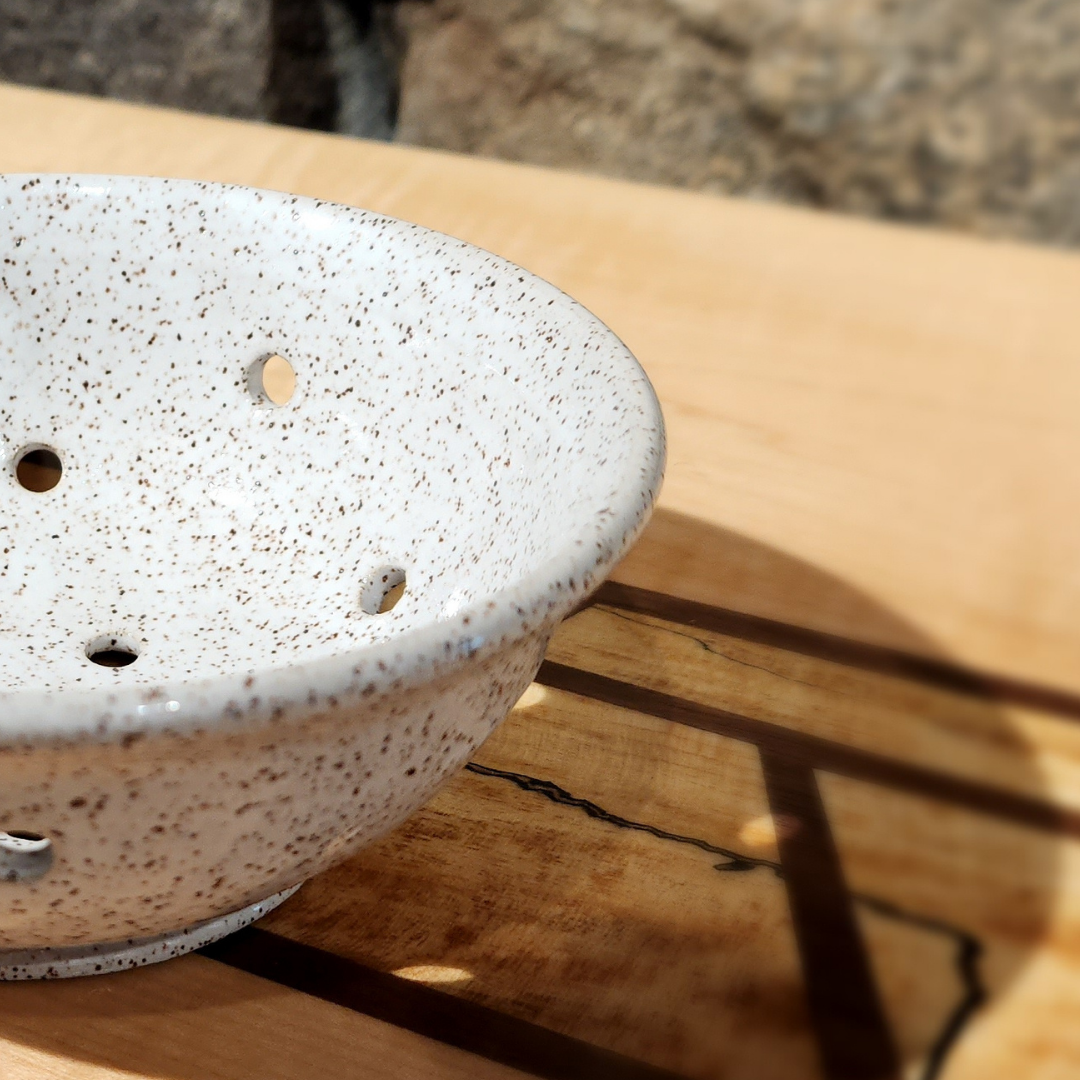 The Small Fruit Bowl is an original stoneware piece by Brendan Lada of Merrimack Mud Co. Measuring approximately 5.5” x 2.5”, this bowl is crafted from quality ceramics and mid-fire stoneware. Ideal for washing and storing berries and other small fruits, it combines functionality with artisanal craftsmanship.