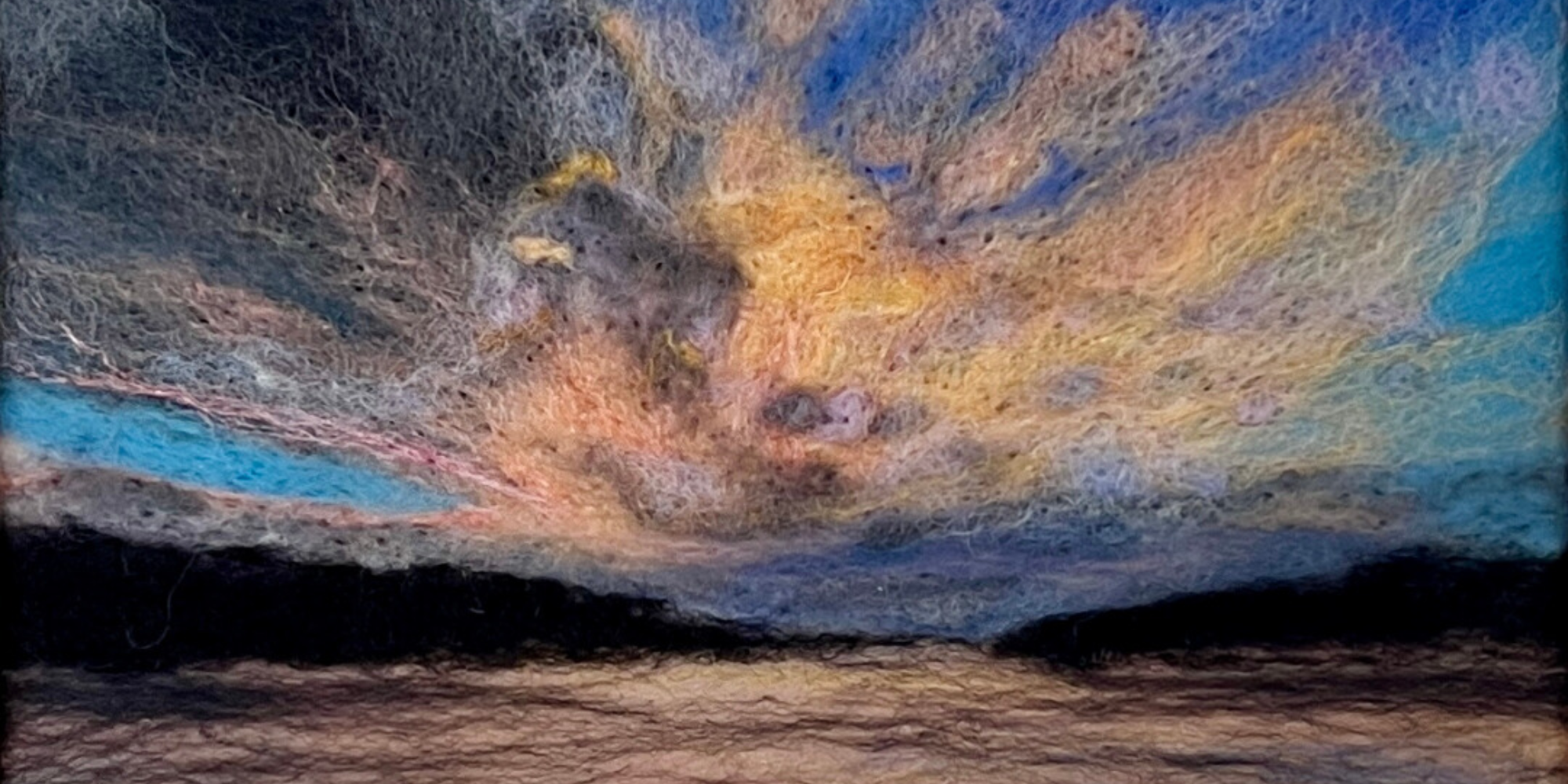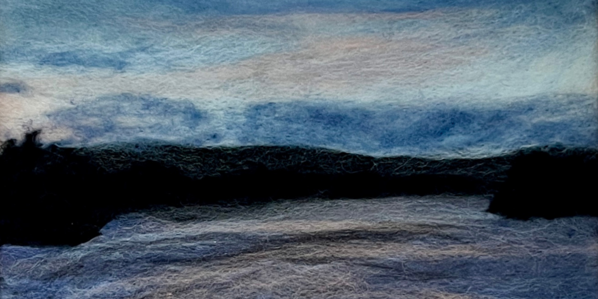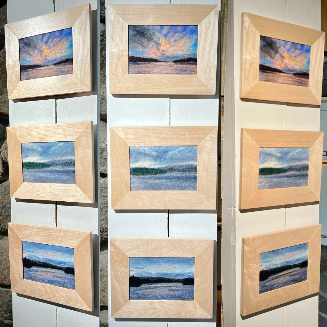 I'm currently working on recreating the fabulous skies and reflections in the water of Highland Lake in wool.