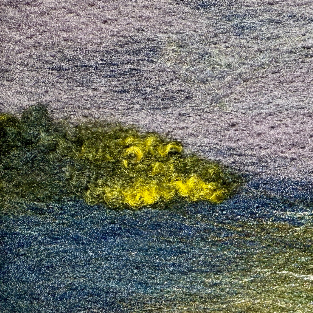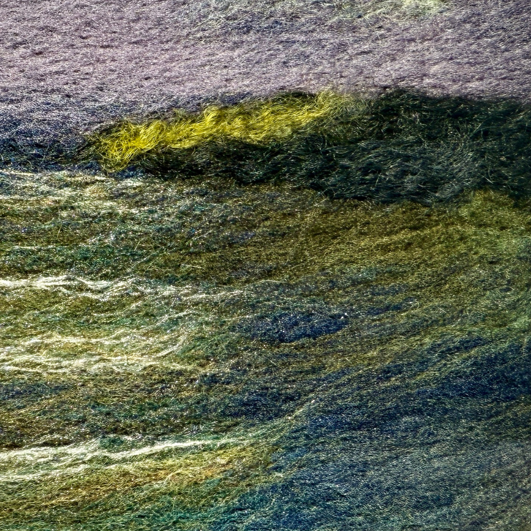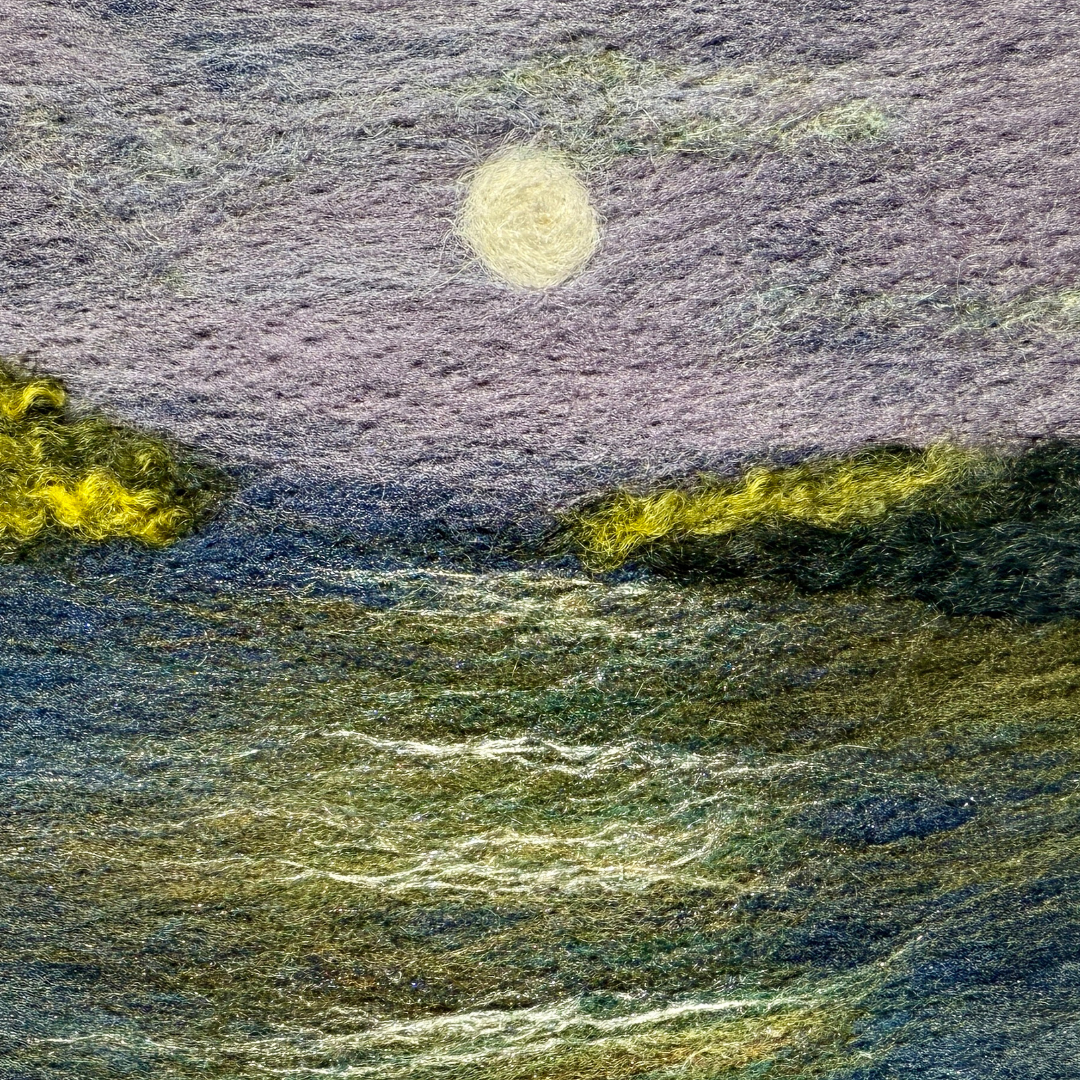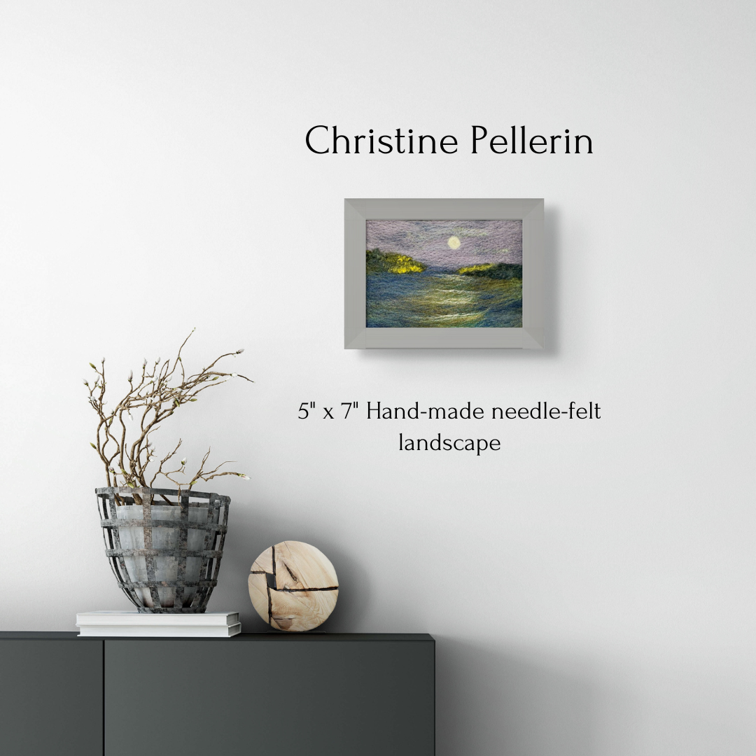 Christine's needle-felted landscapes are a conversation starter. From far away, they look painted, but close up, they are fuzzy! It's fun to watch gallery visitors realize these unique pieces are wool.