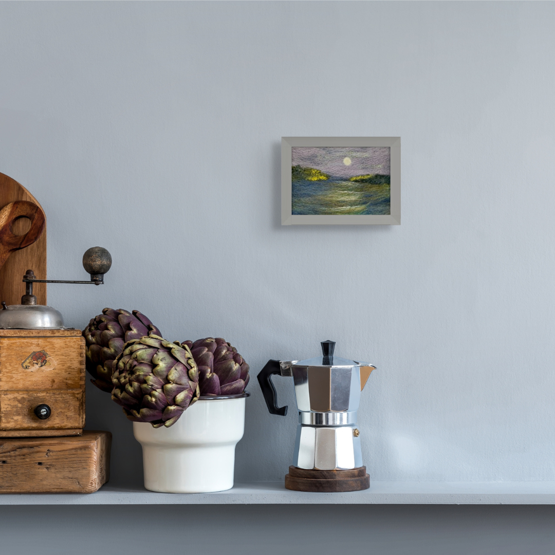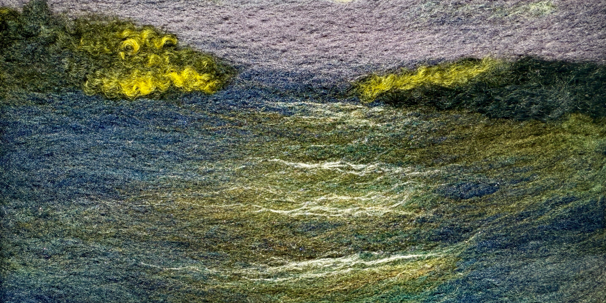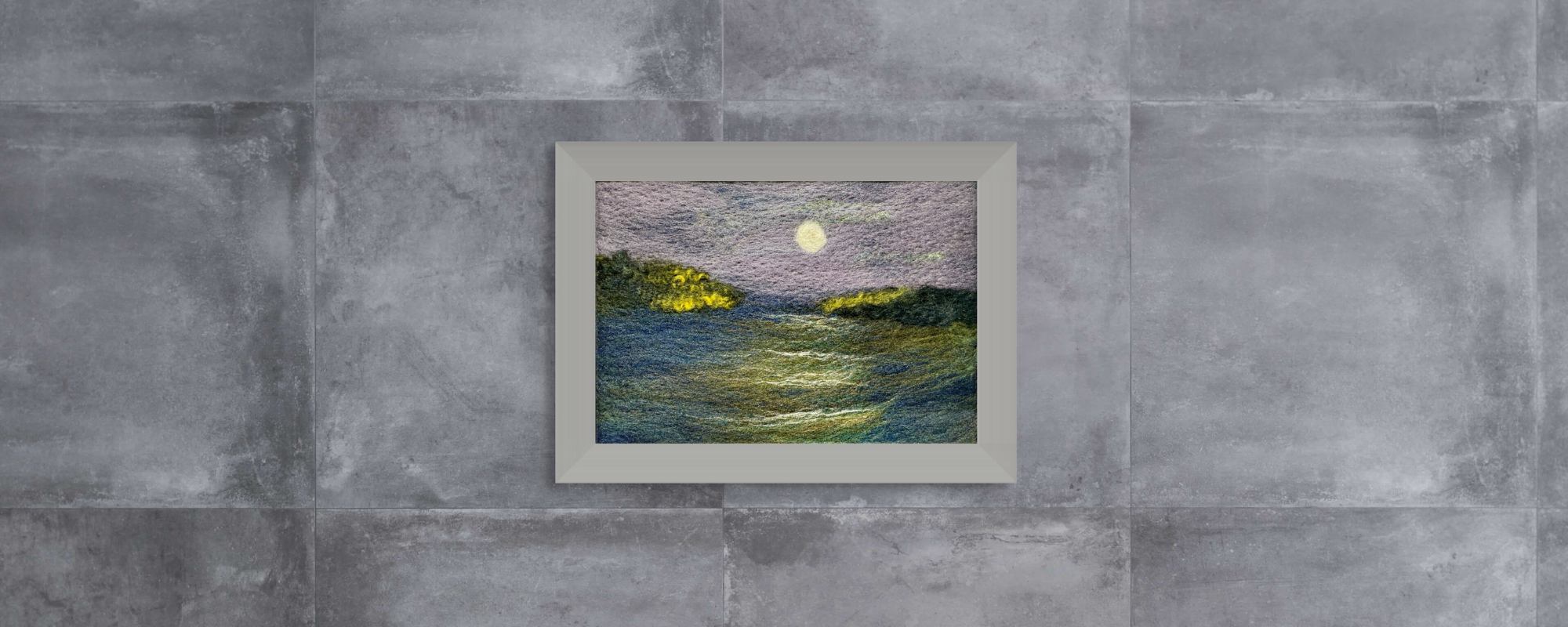 Christine's needle-felted landscapes are a conversation starter. From far away, they look painted, but close up, they are fuzzy! It's fun to watch gallery visitors realize these unique pieces are wool.