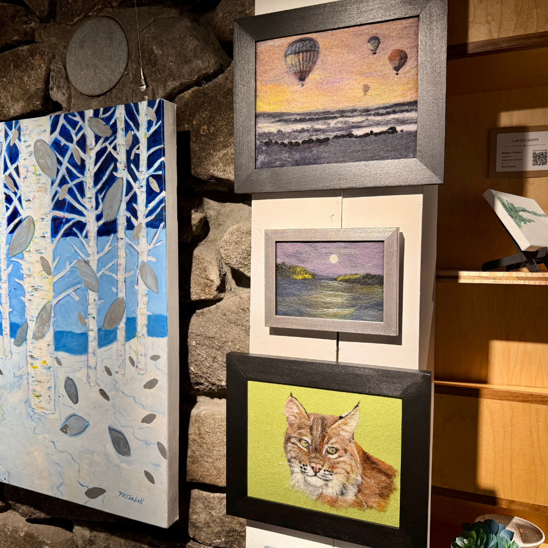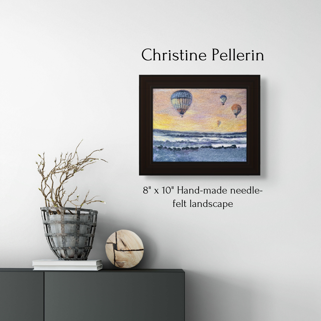 Christine's needle-felted landscapes are a conversation starter. From far away, they look painted, but close up, they are fuzzy! It's fun to watch gallery visitors realize these unique pieces are wool.