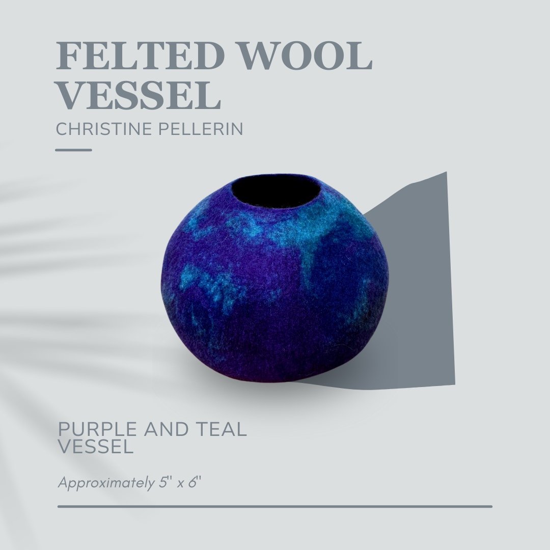 Christine crafts these lovely vessels using hand-felted merino wool. This technique, called 'wet felting,' creates art that looks like a vase but is fuzzy and far less breakable.
