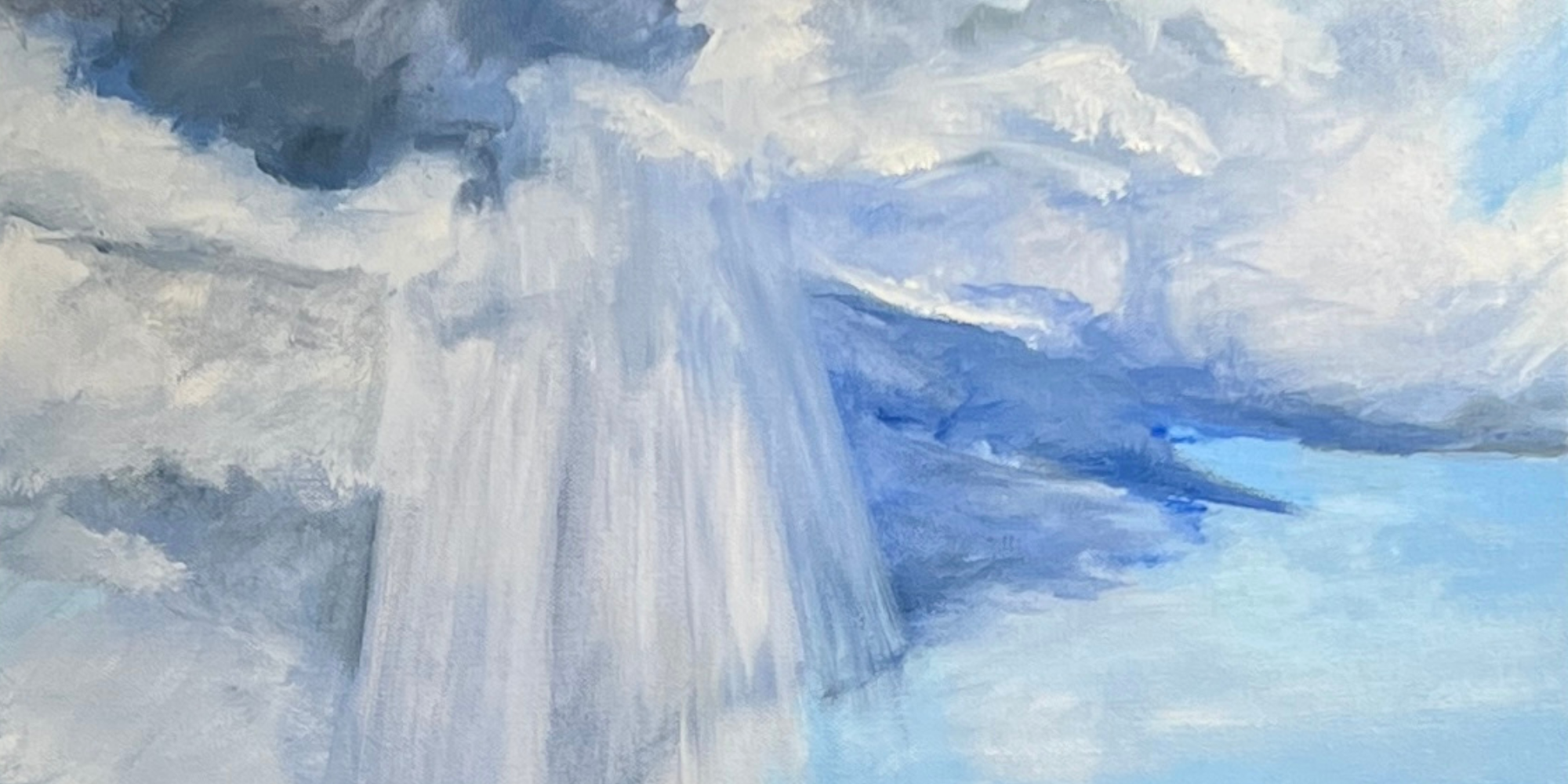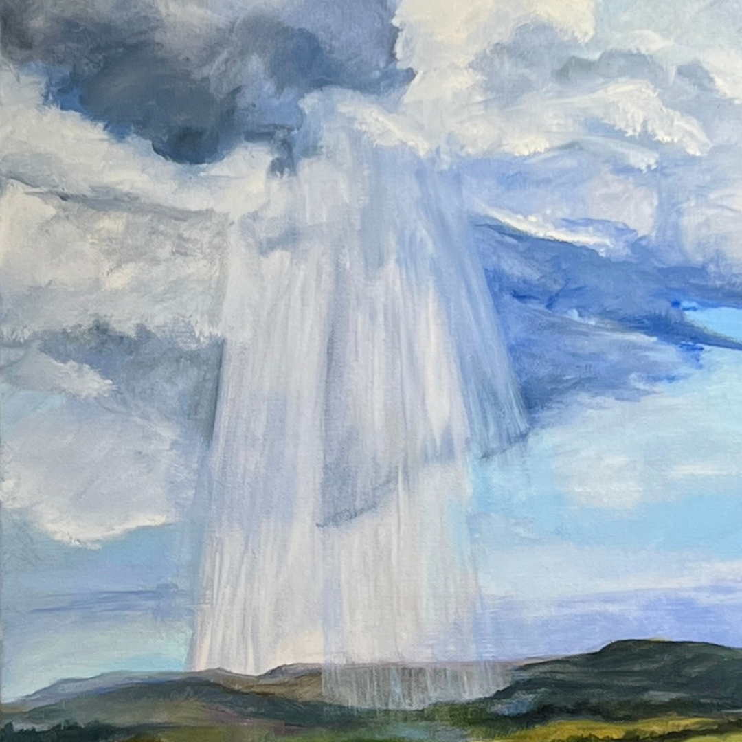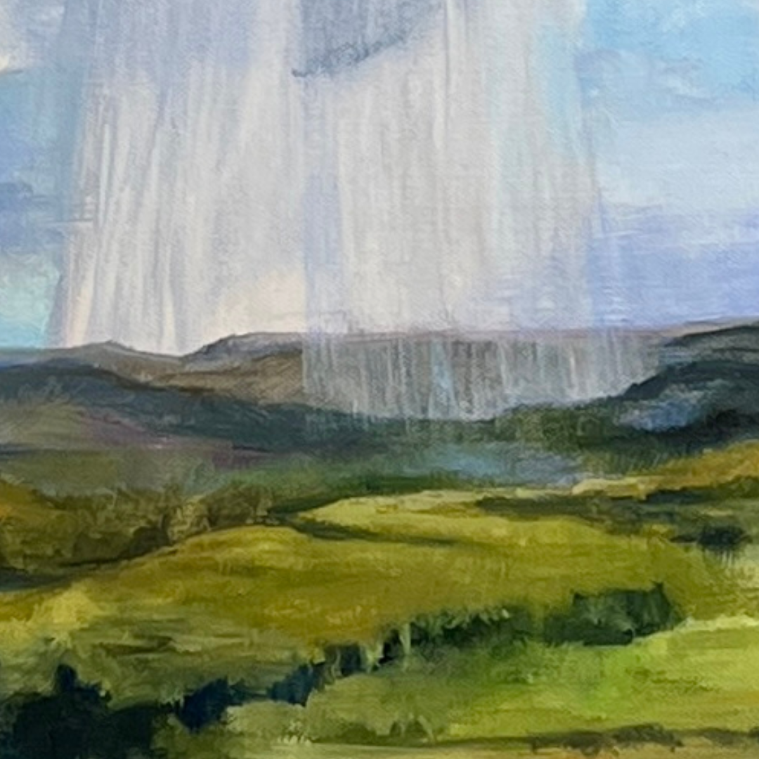 This beautifully rendered landscape captures a summer rainstorm breaking over the horizon, invoking moods of peace and relaxation.