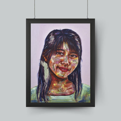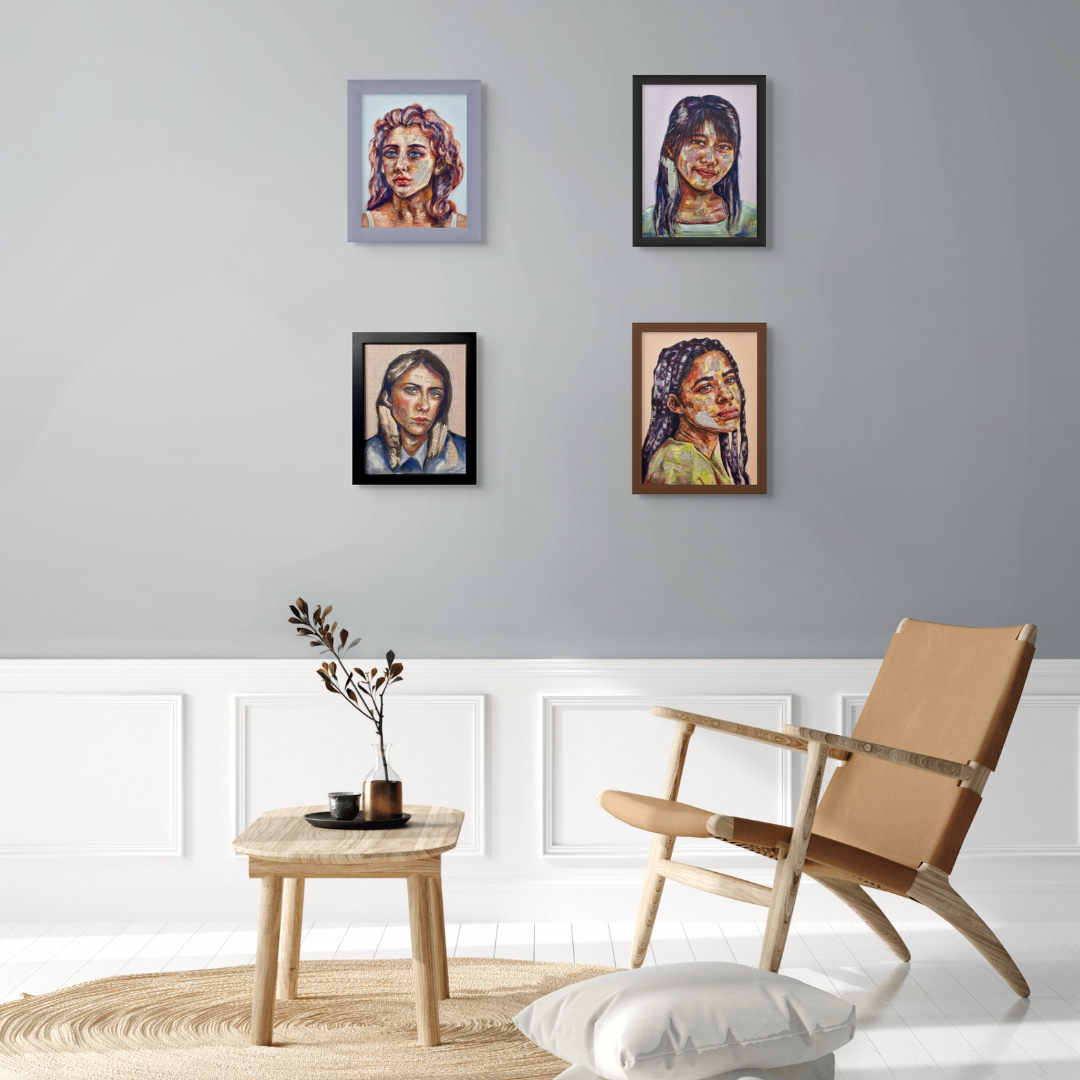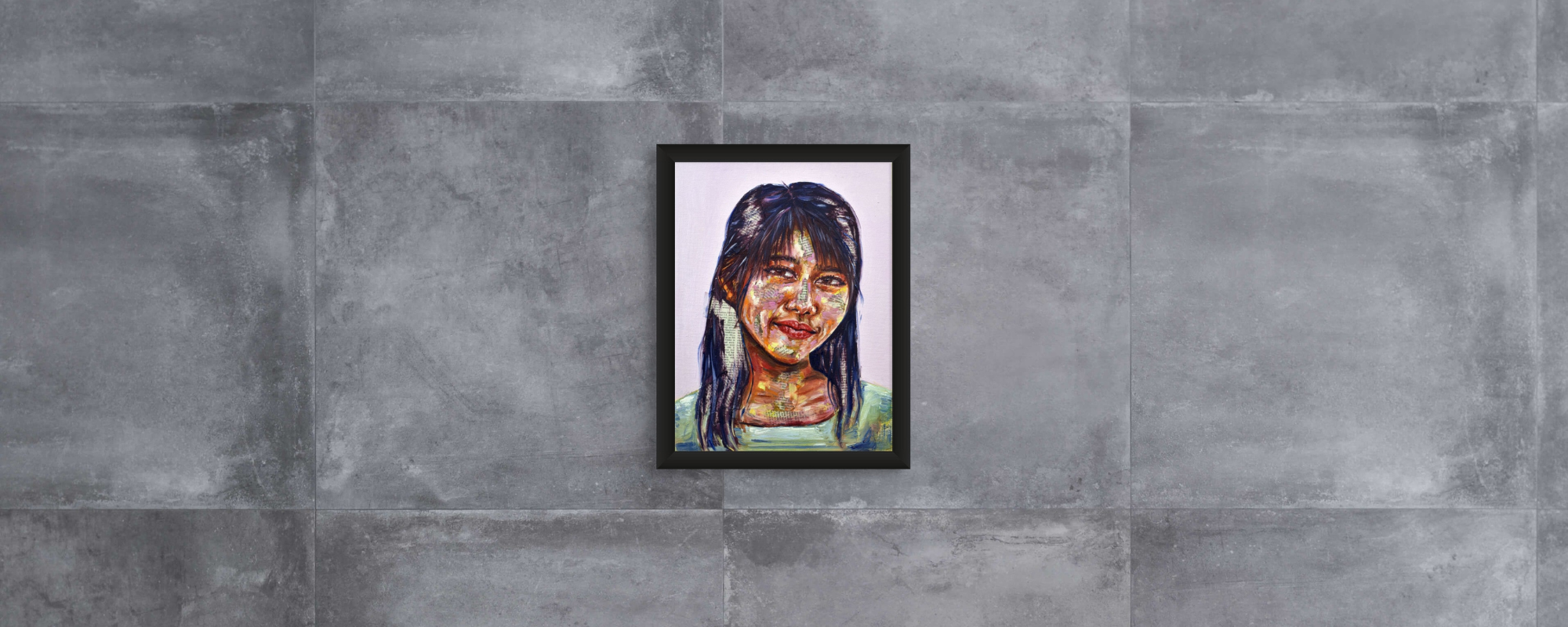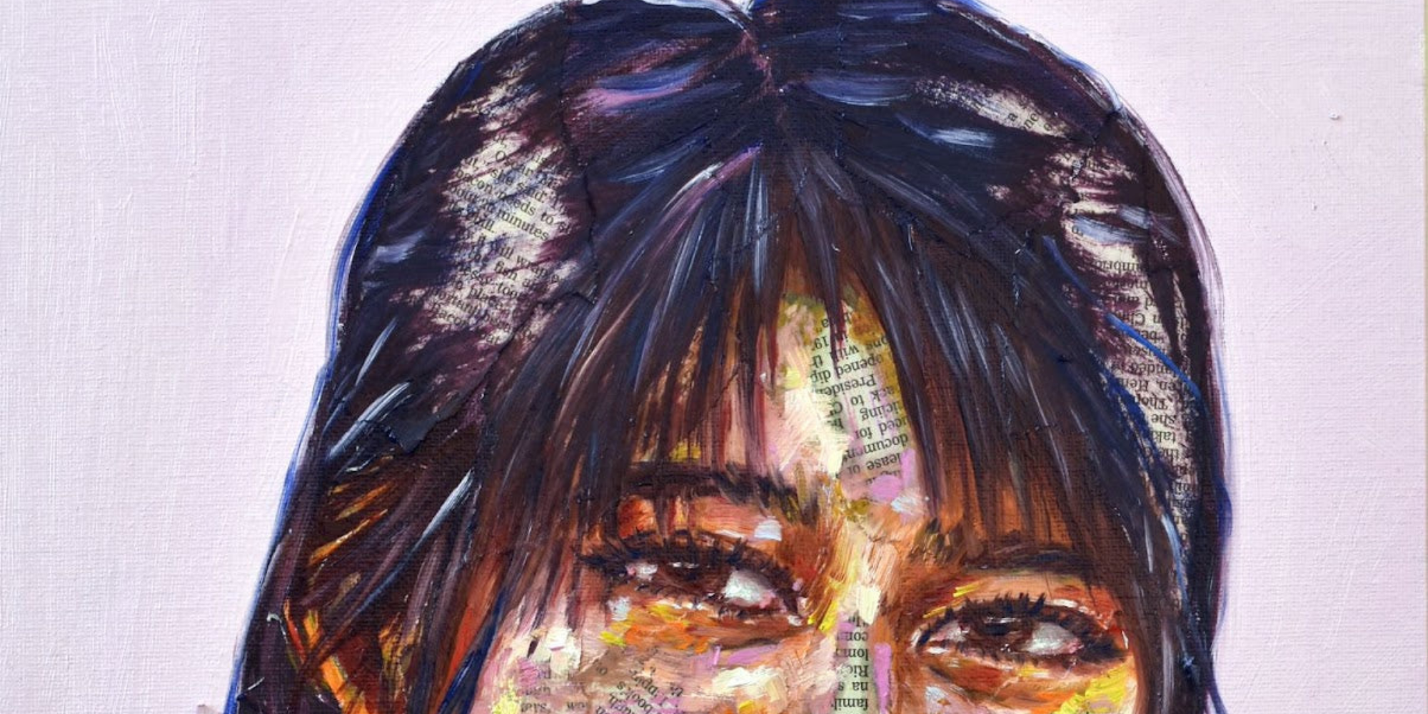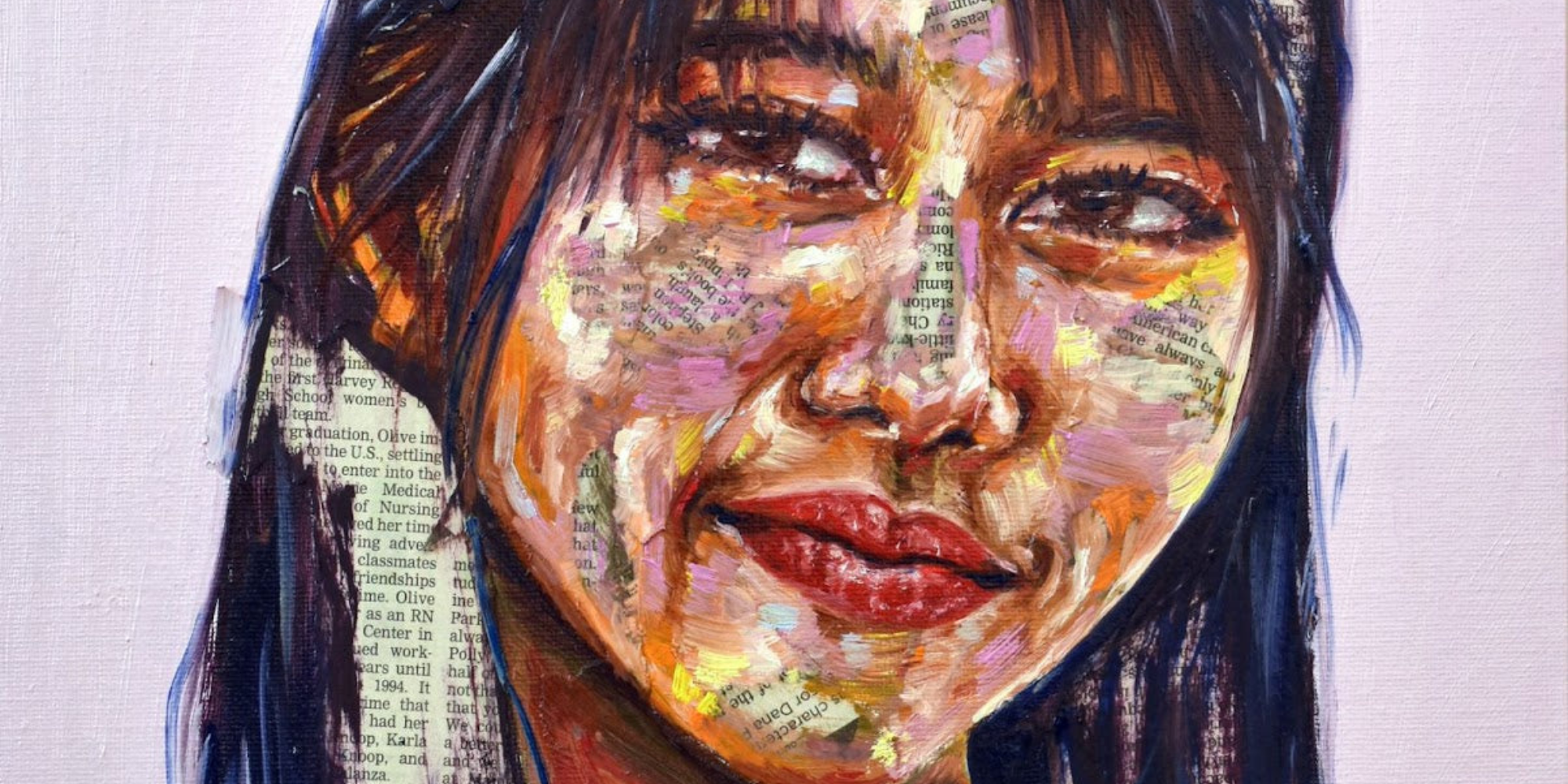Maya's collection of mixed-media portraits is haunting and beautiful. Look closely, and you'll realize these beautiful faces are painted onto newsprint. Look even closer, and you'll see some of these articles are obituaries.