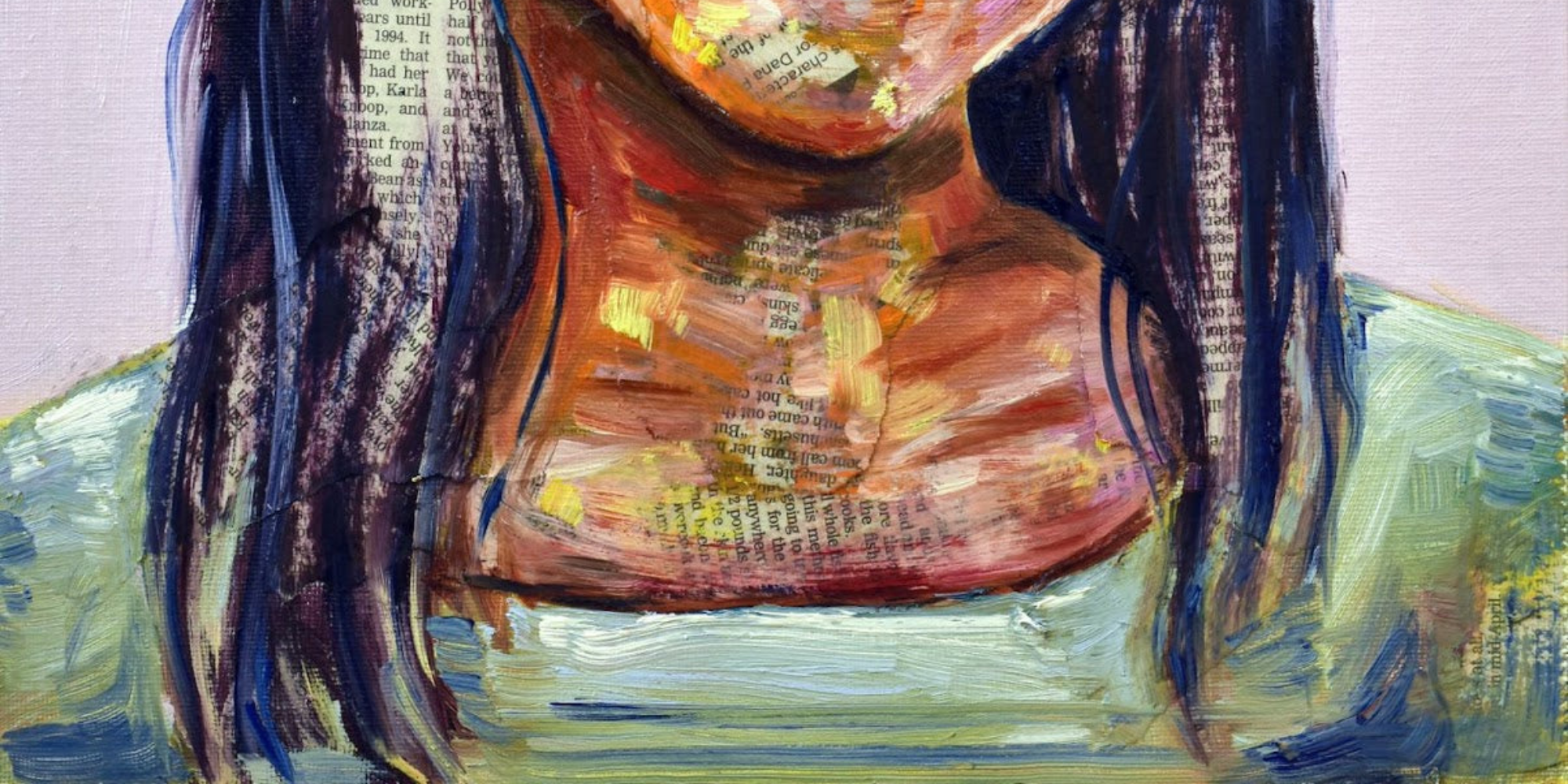 Oil and Newspaper on Canvas Board