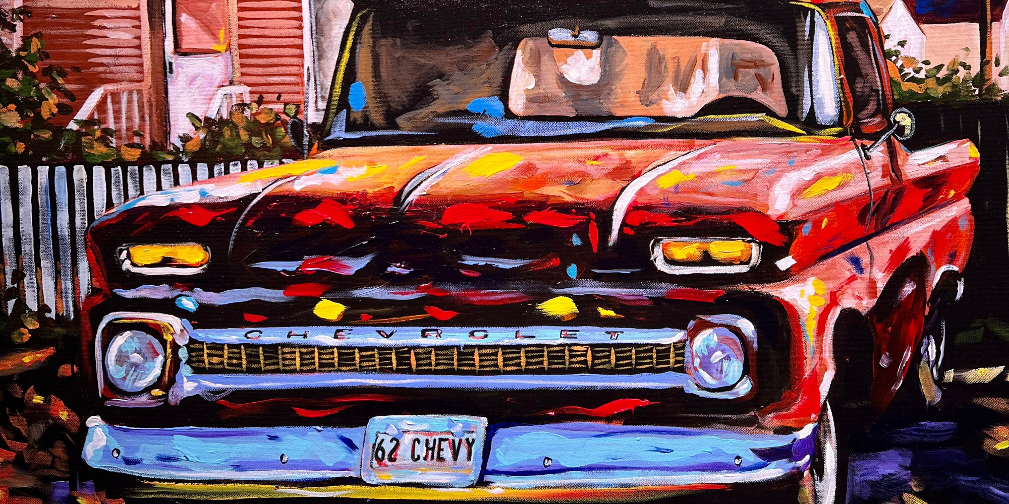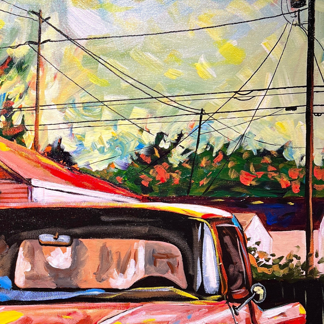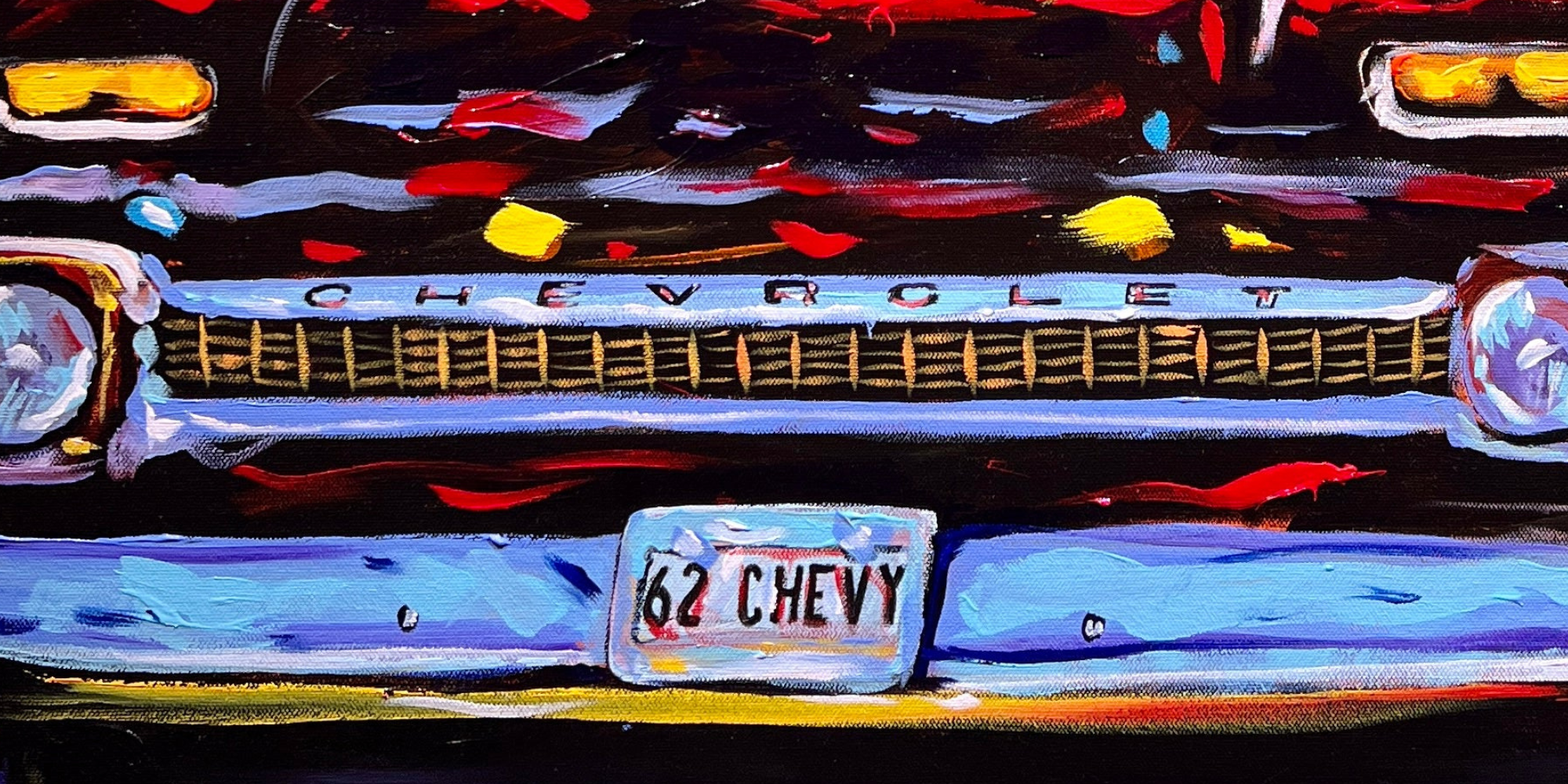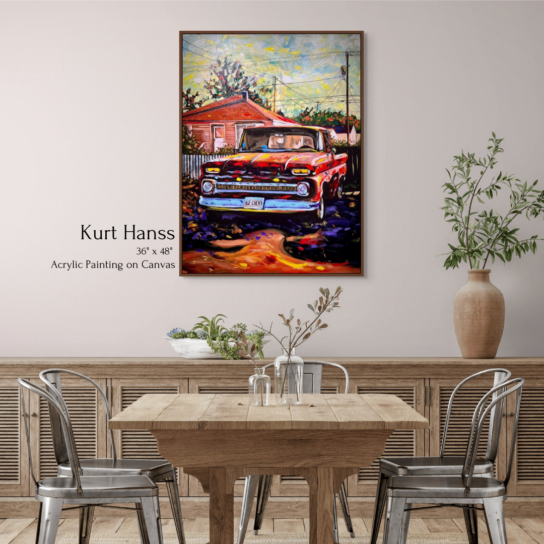 Kurt's paintings bring a vibrant and fresh perspective to aspects of the American landscape that can often be overlooked and underappreciated. Like many of Kurt's other paintings, this '62 Chevy invokes a sense of nostalgia for a simpler time and skillfully highlights the beauty of American automotive design.