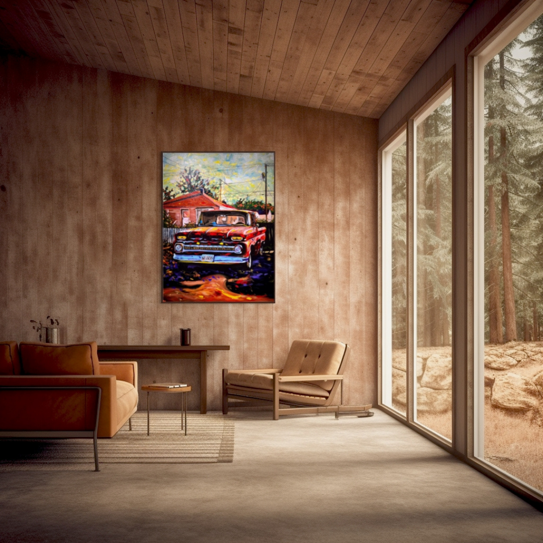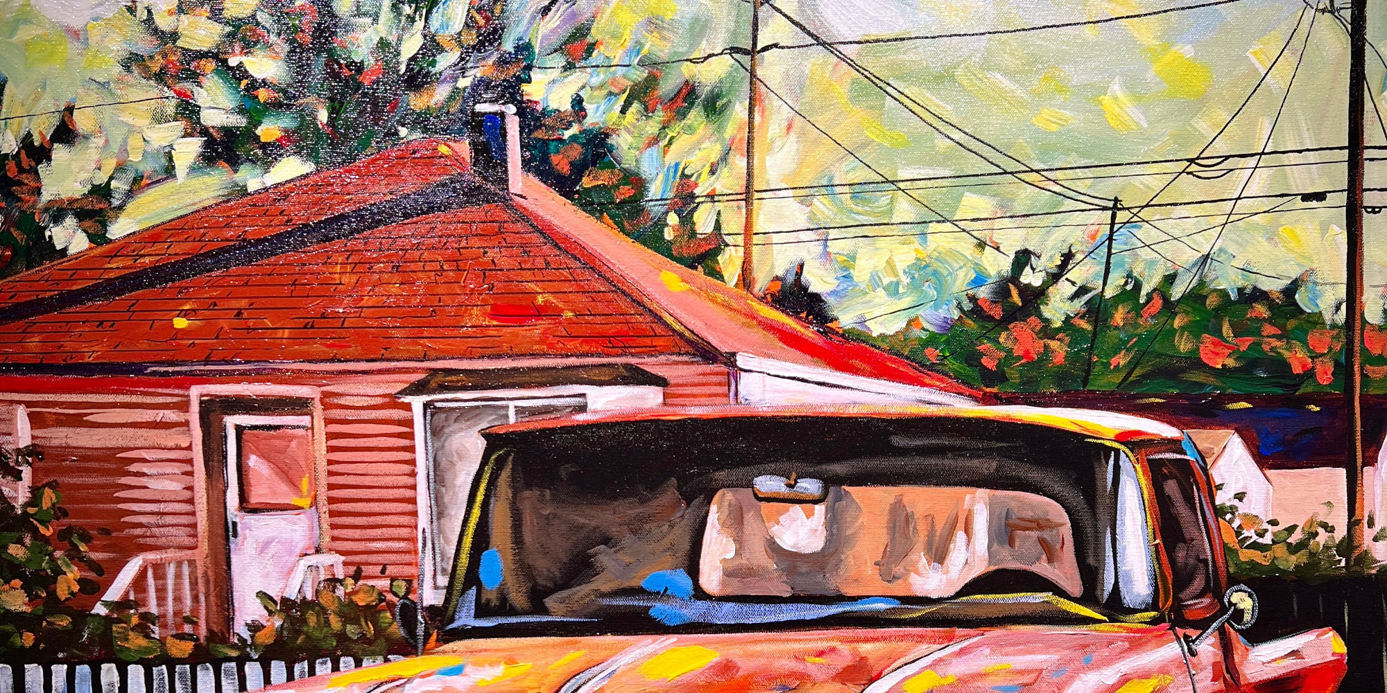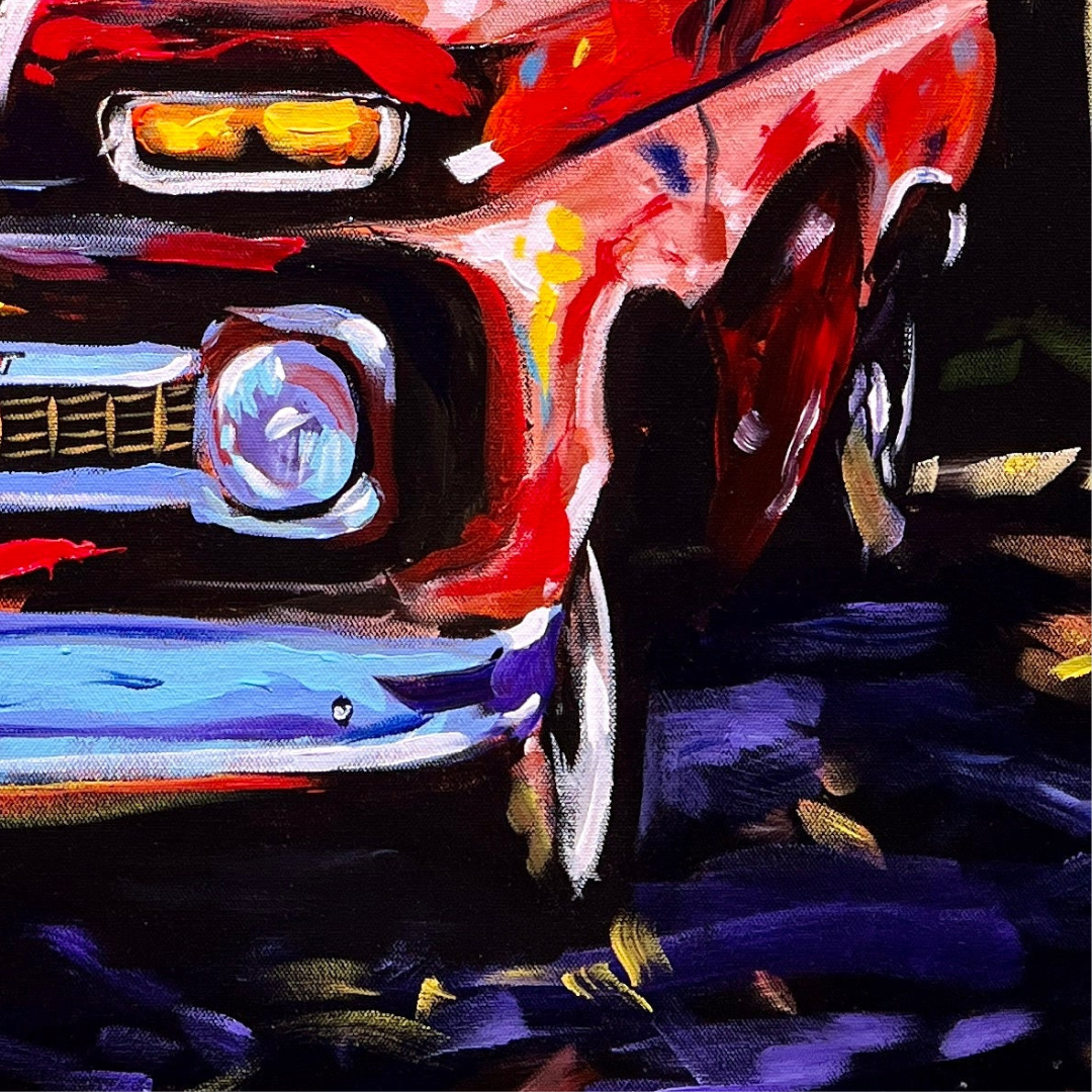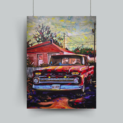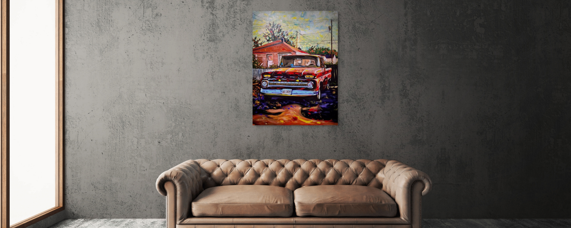 Kurt's paintings bring a vibrant and fresh perspective to aspects of the American landscape that can often be overlooked and underappreciated. Like many of Kurt's other paintings, this '62 Chevy invokes a sense of nostalgia for a simpler time and skillfully highlights the beauty of American automotive design.