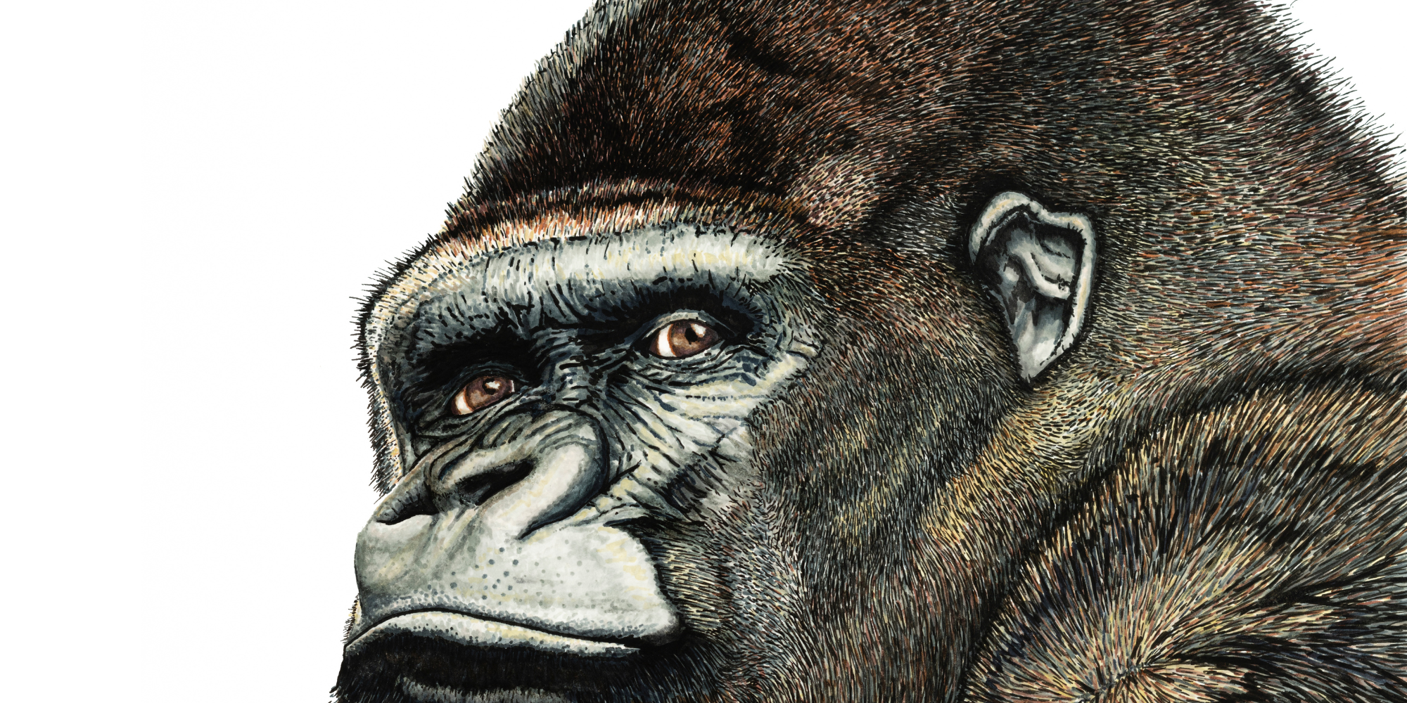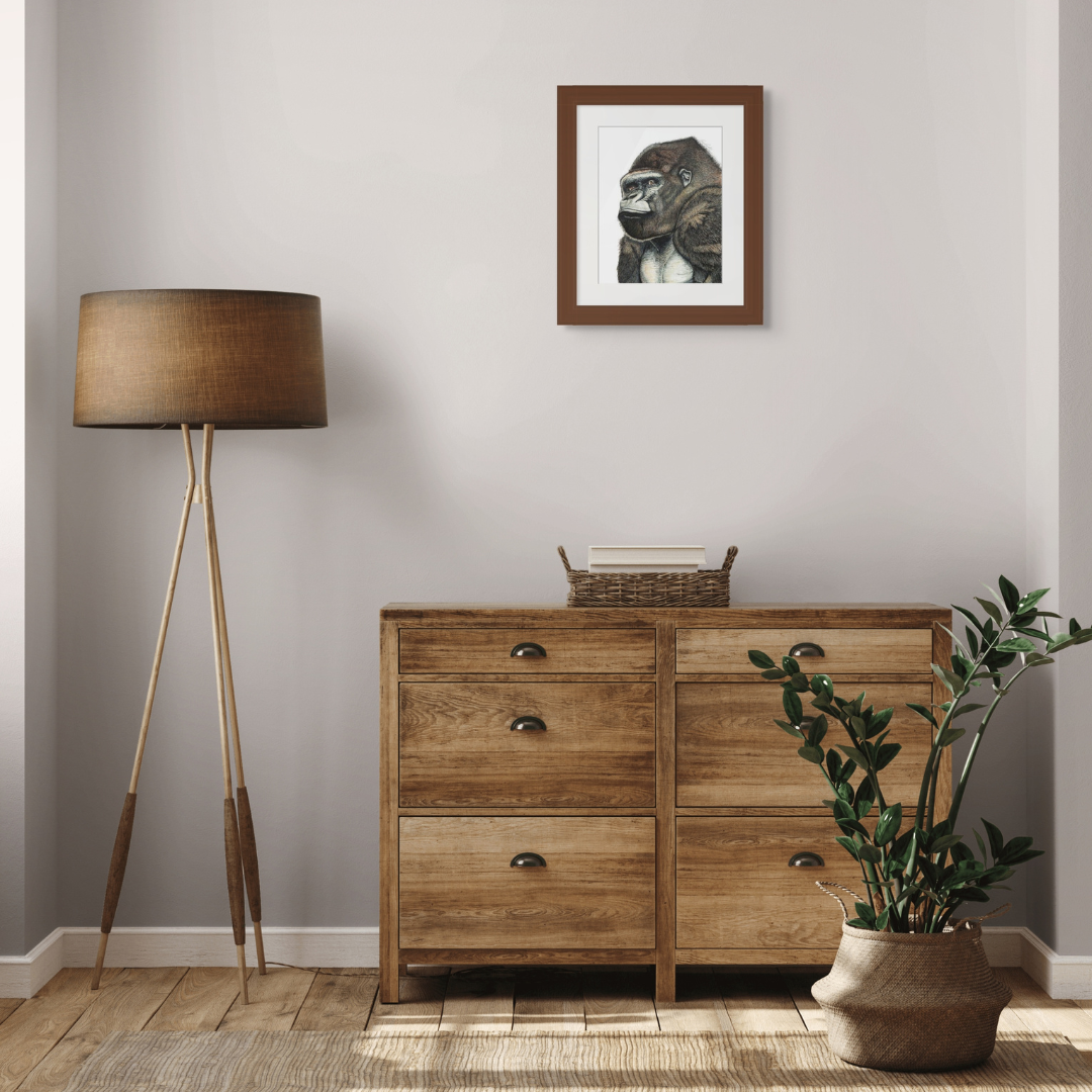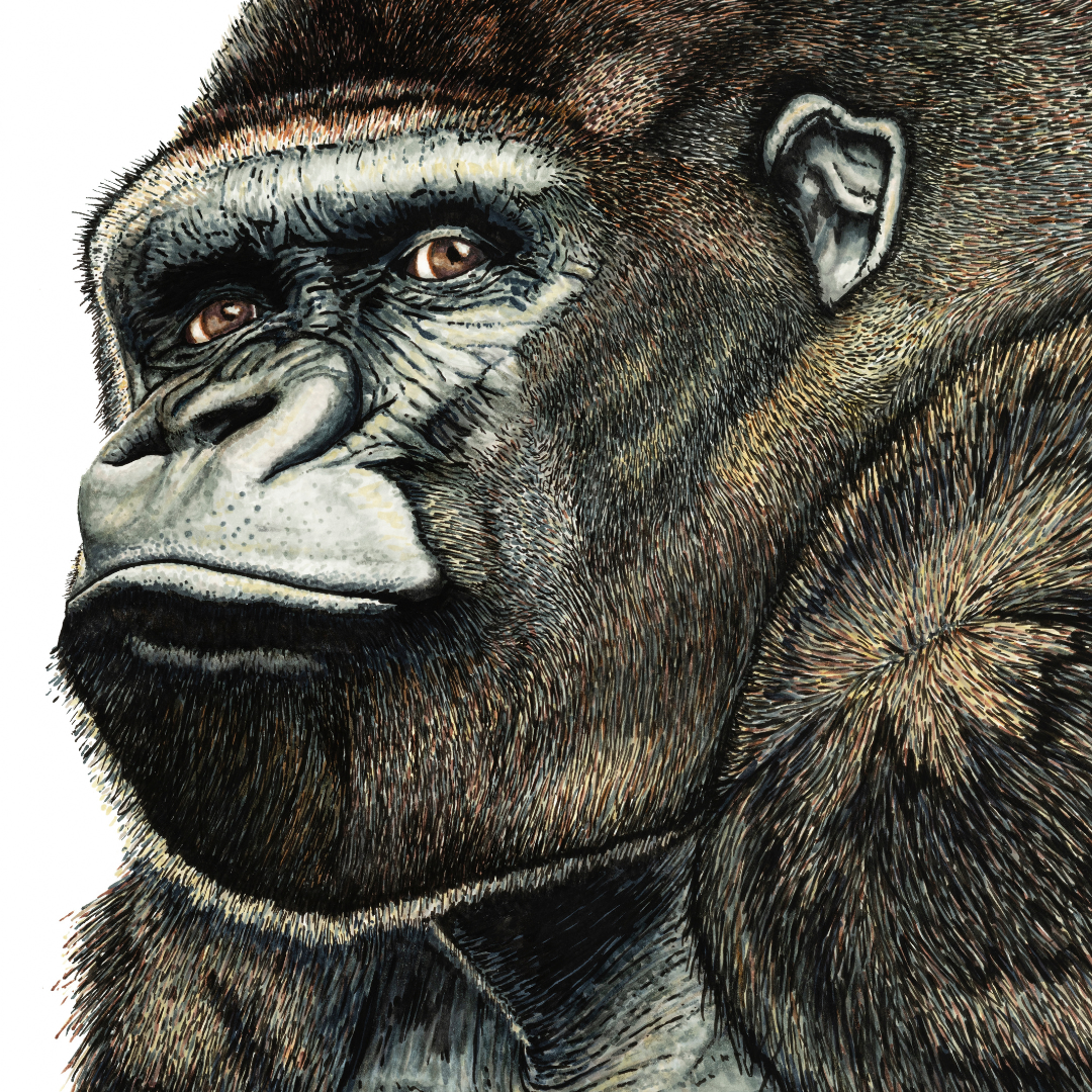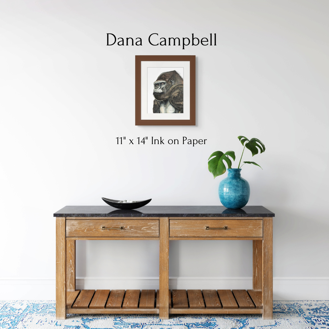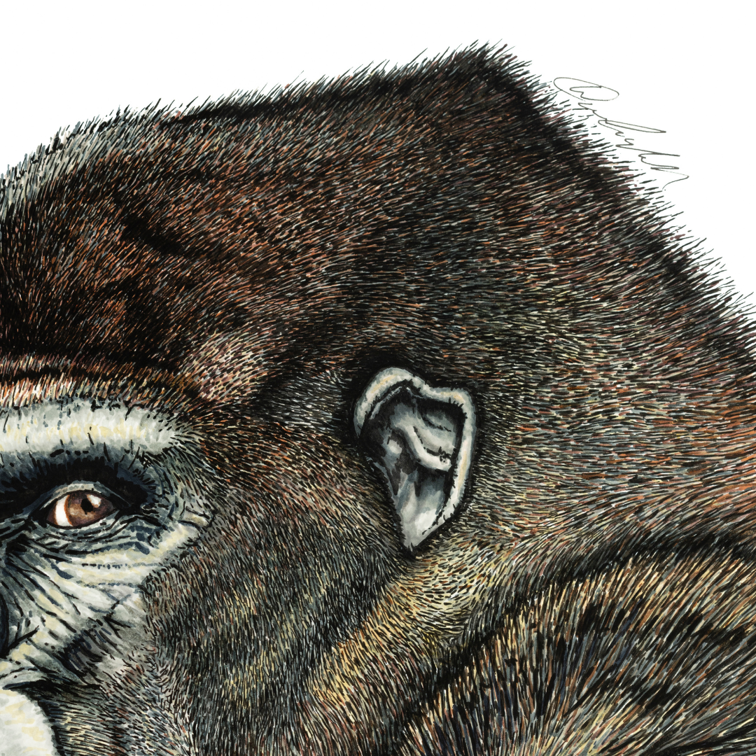 This bold silverback gorilla was meticulously created with great attention to detail using ink brush marker on 11" x 14" fine art paper.