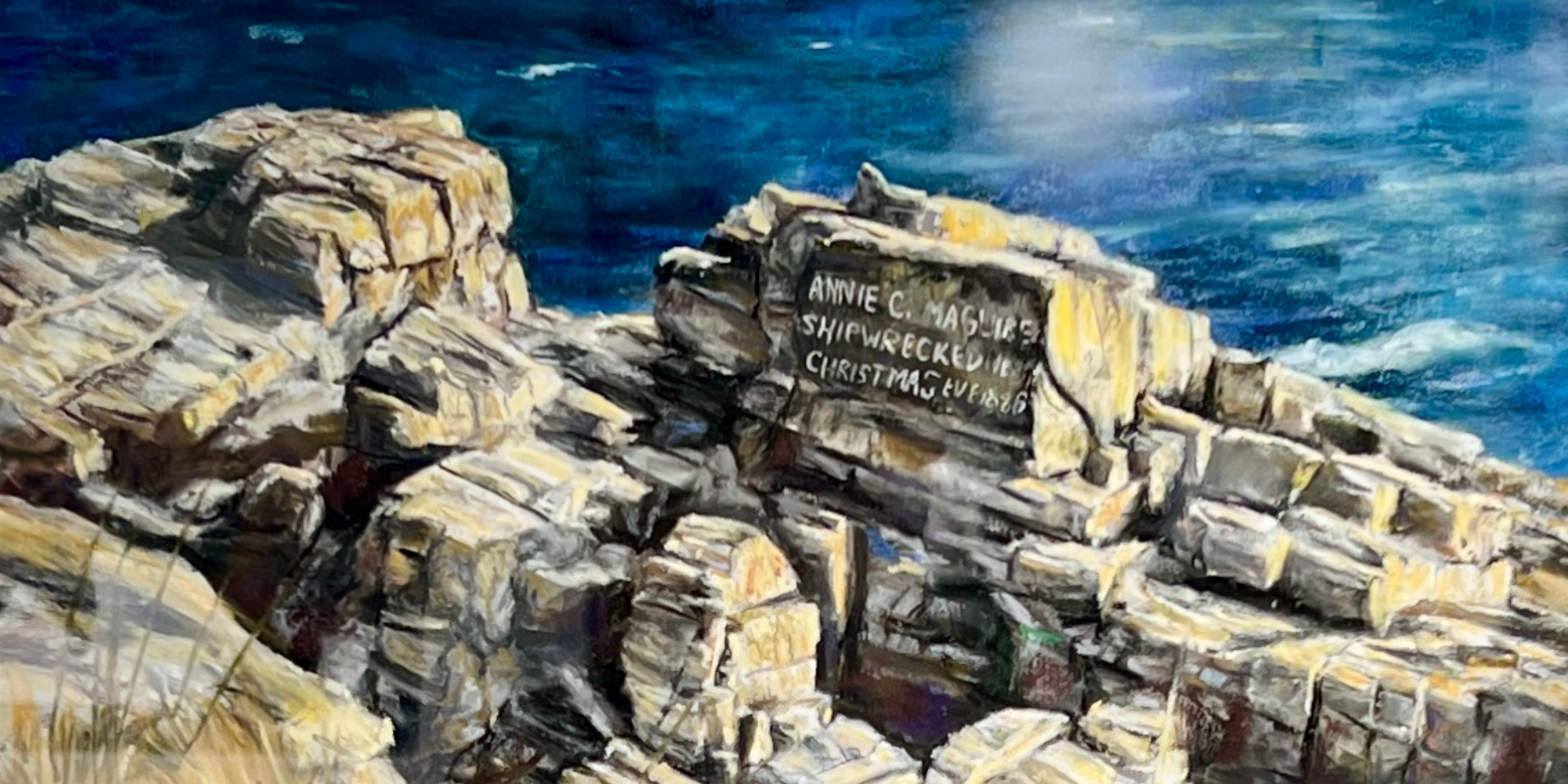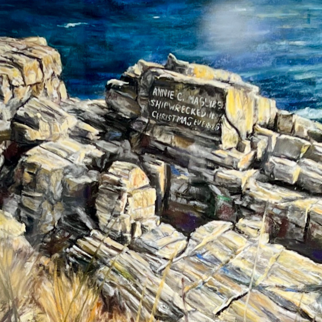Artist Jackie Hanson captured the historic site, including the iconic inscription commemorating the wreck, in this detailed and showstopping 4-panel panorama.