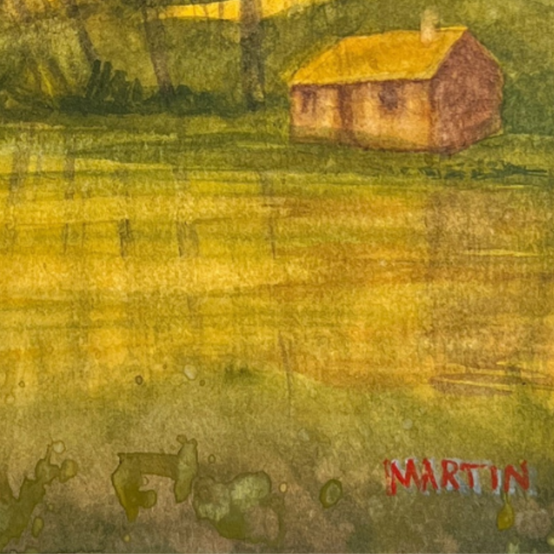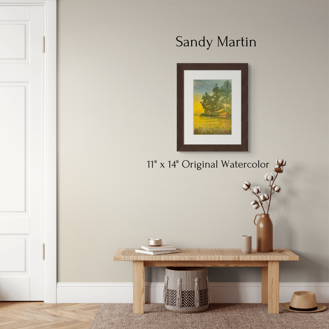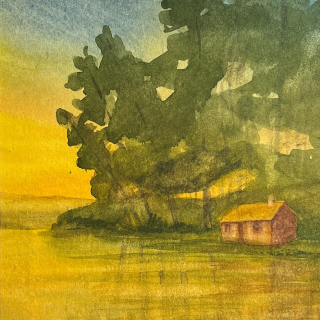 Sandy Martin captures this feeling perfectly in her original watercolor "Lake Camp" - surrounded by trees and water, this camp looks like a true escape.
