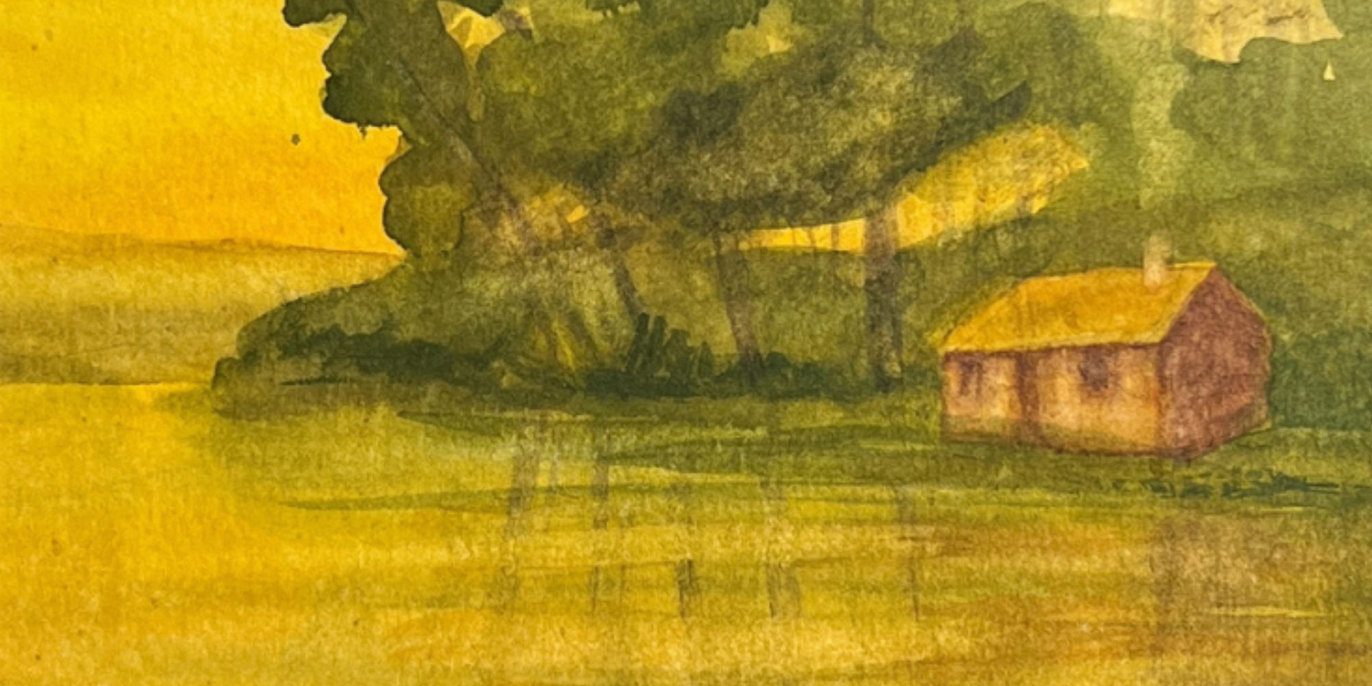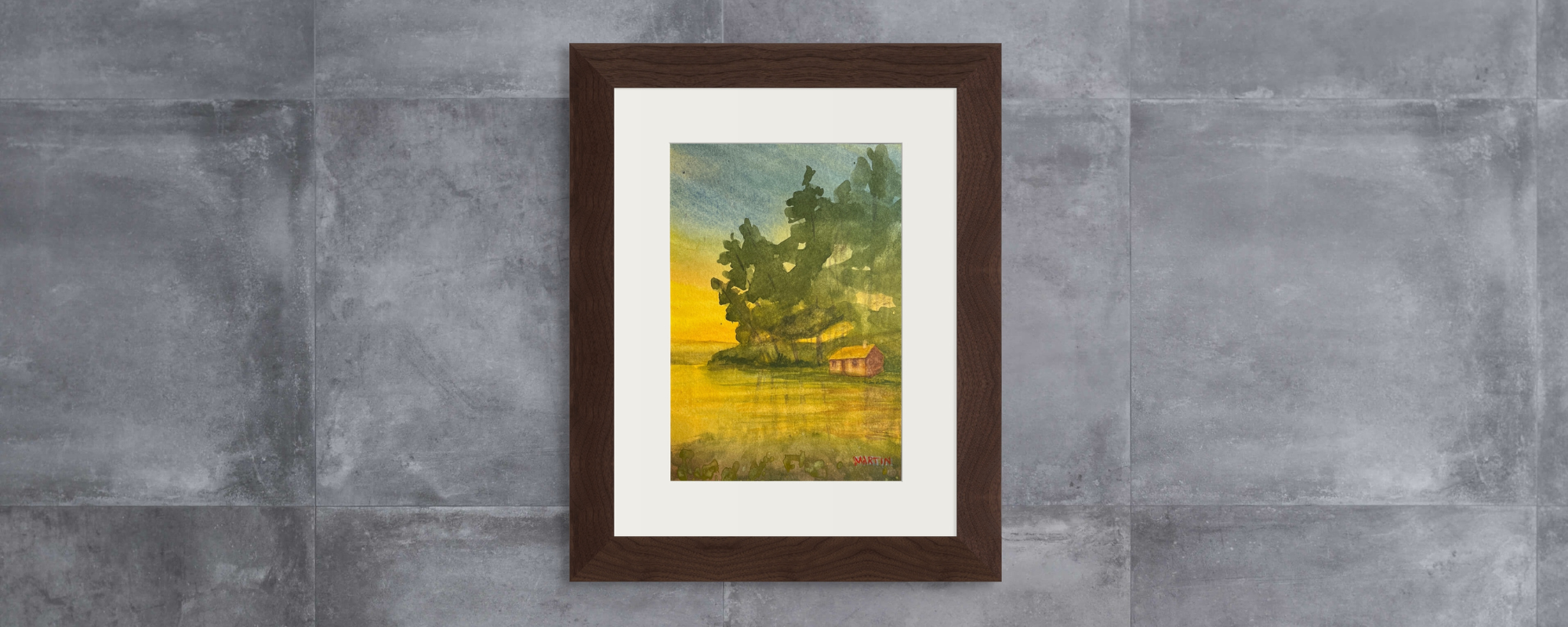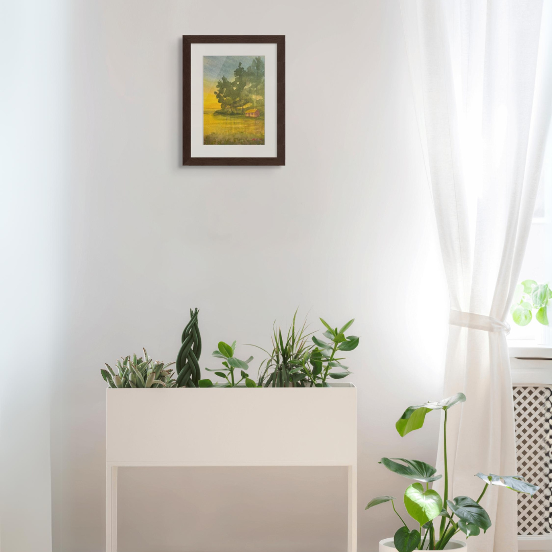 Sandy Martin captures this feeling perfectly in her original watercolor "Lake Camp" - surrounded by trees and water, this camp looks like a true escape.