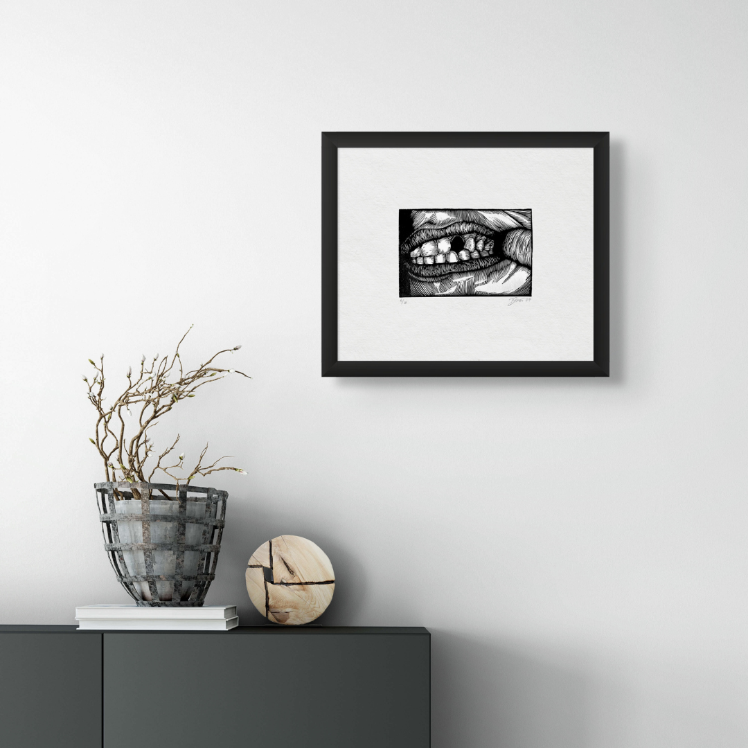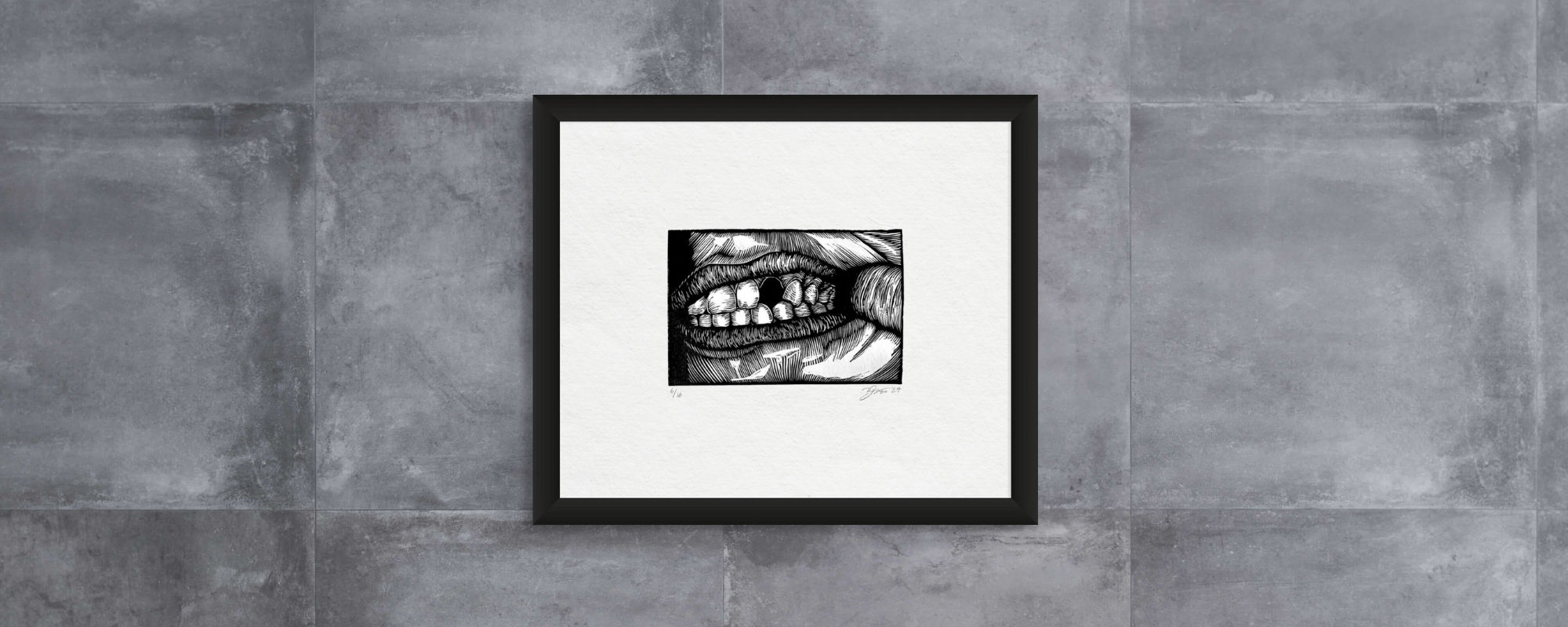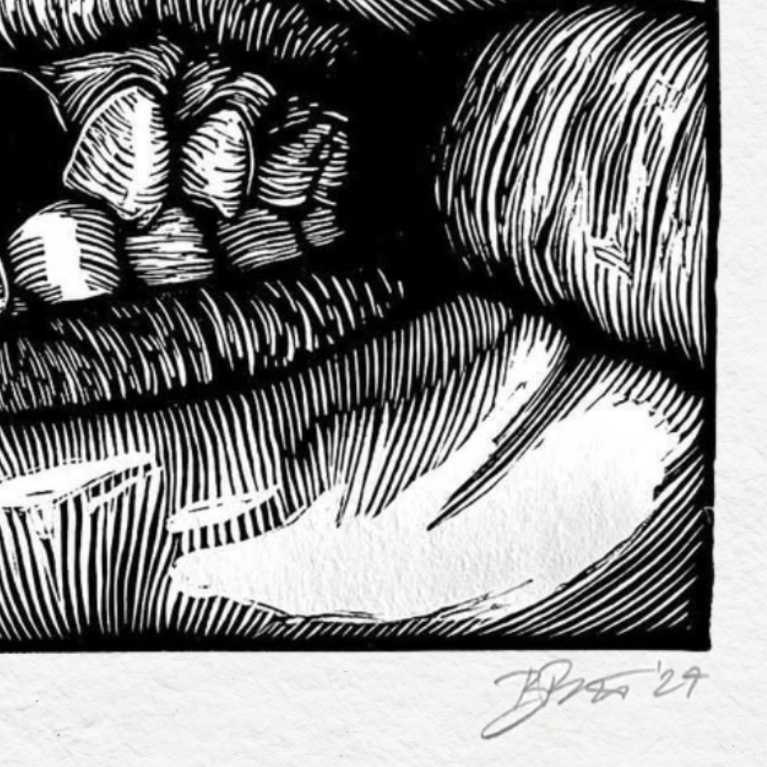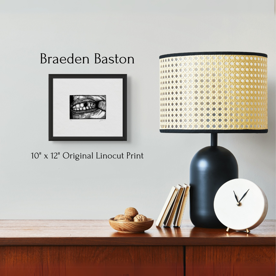 Braeden's limited edition linocut prints are started by meticulously hand-carving the blocks they are made from before individually pressing each work of art. These pieces bring a vintage aesthetic with a healthy dose of wonder and a touch of the macabre.